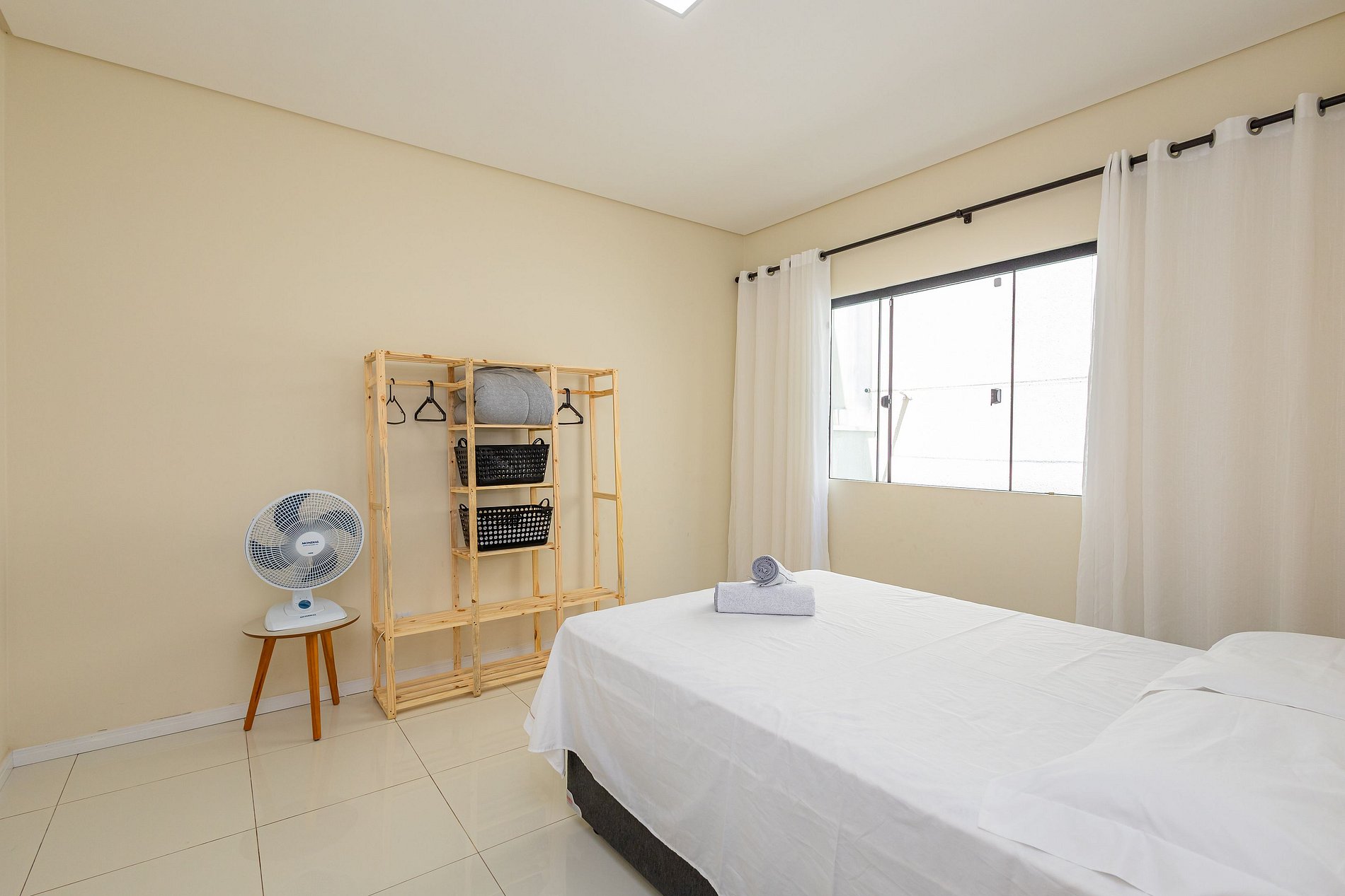 Com 2 quartos, incluindo uma suíte, oferece camas aconchegantes, ventiladores e roupa de cama para garantir uma estadia tranquila.