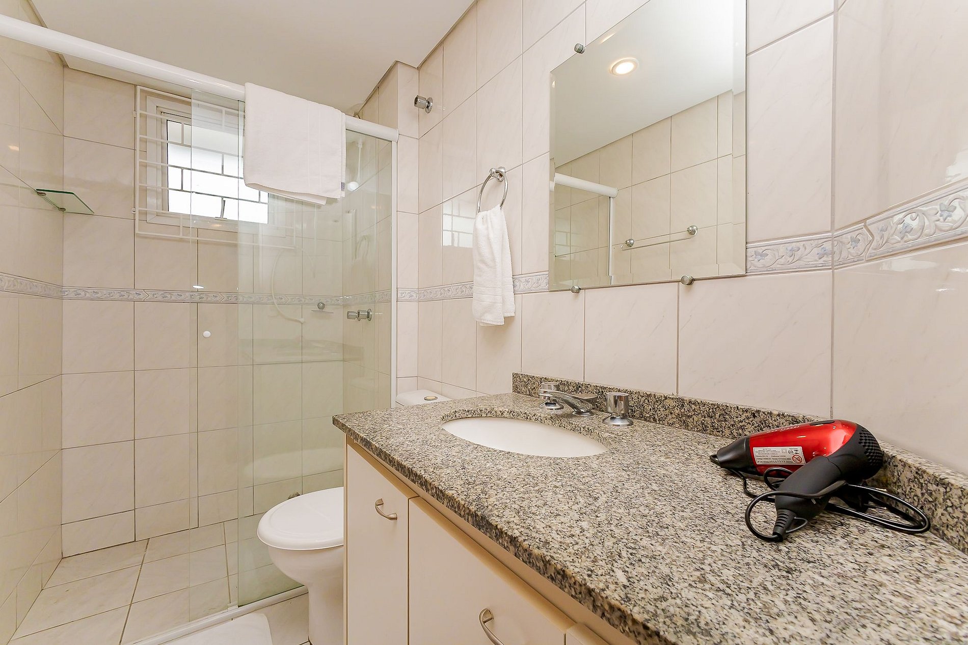 • Chuveiro com água quente, secador de cabelo e toalhas de corpo e rosto para todos os hóspedes.
