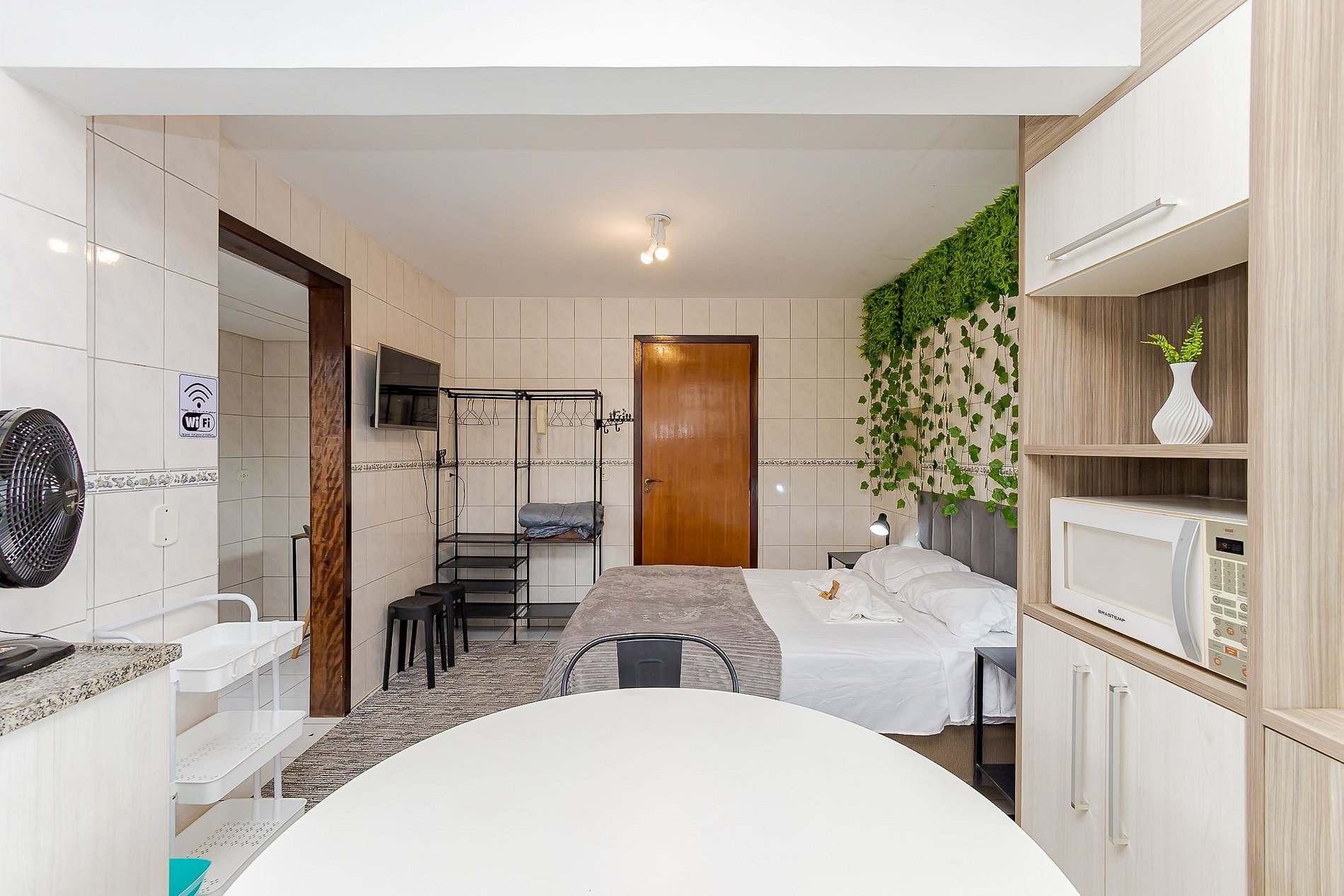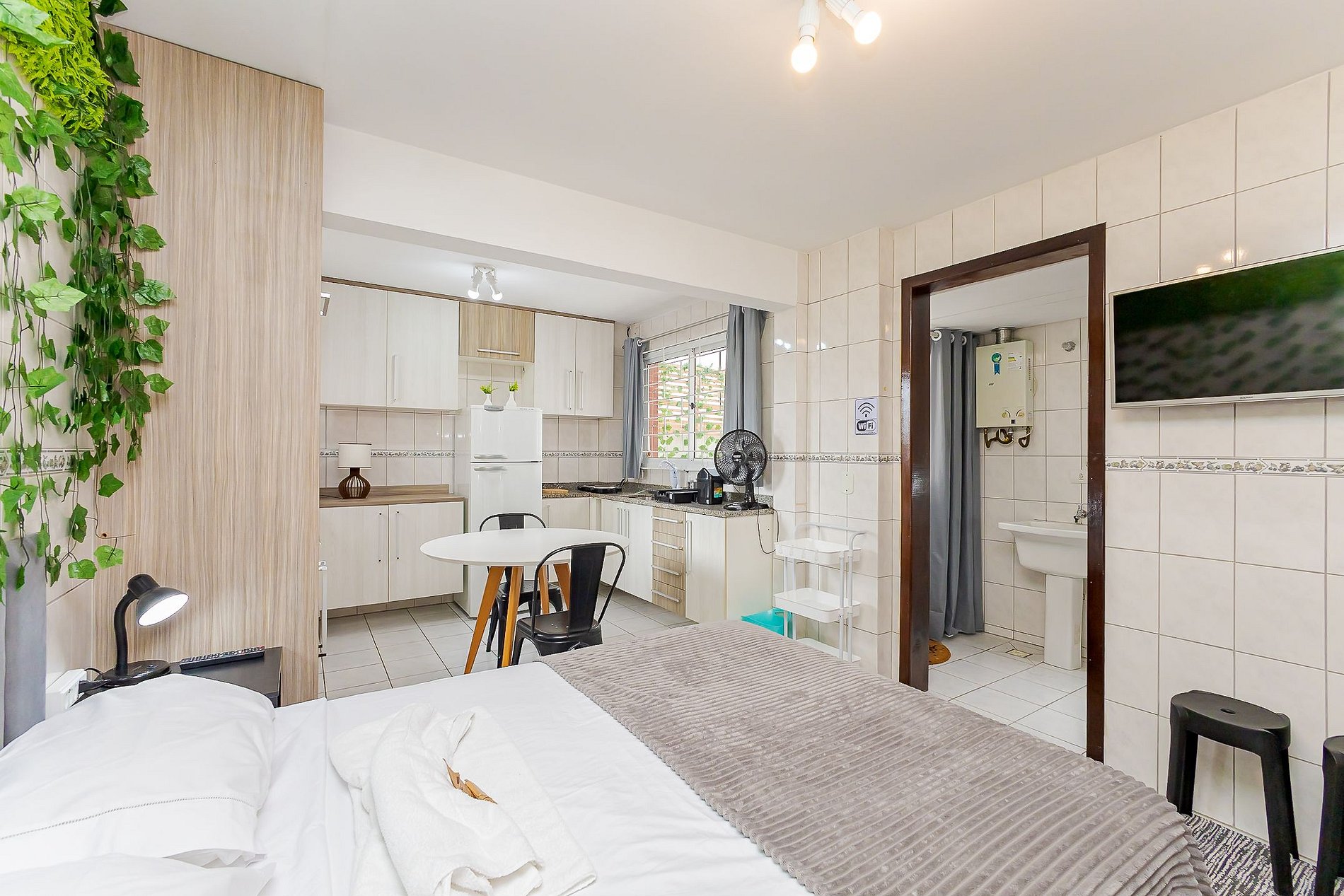 Este estúdio foi pensado para oferecer conforto e funcionalidade durante sua estadia.