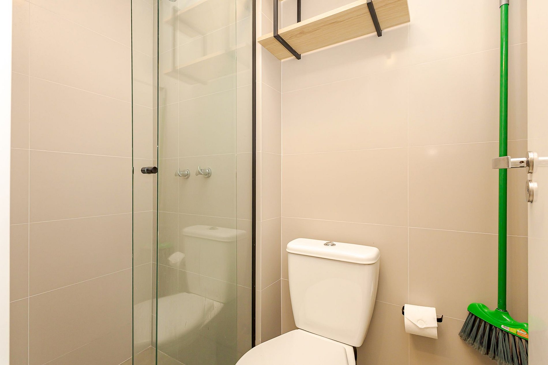 • Banheiro: cuba externa e banheiro interno com box de vidro, vaso sanitário e chuveiro com água quente.