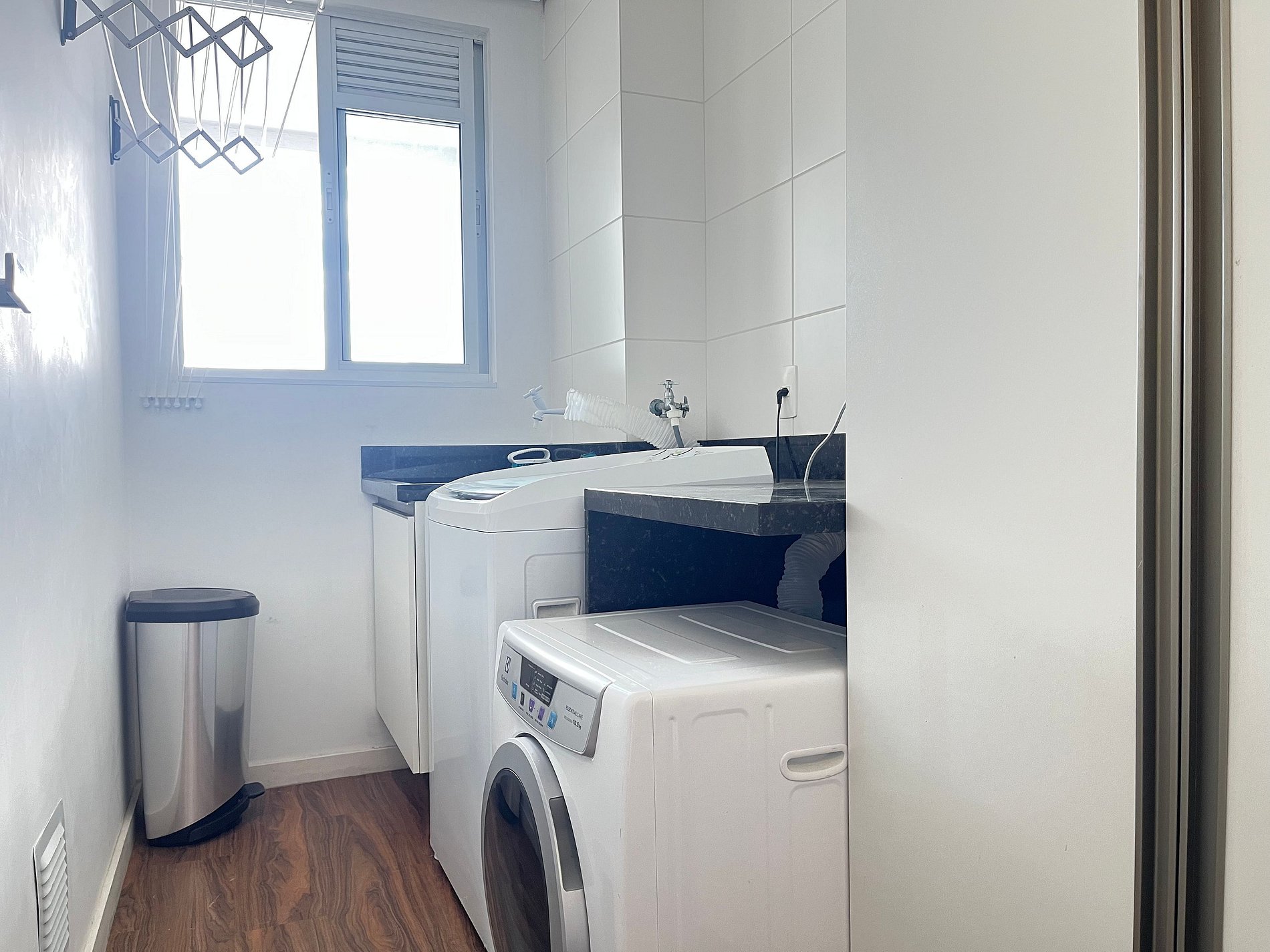 • Área de serviço com máquina de lavar, secadora e tanque.