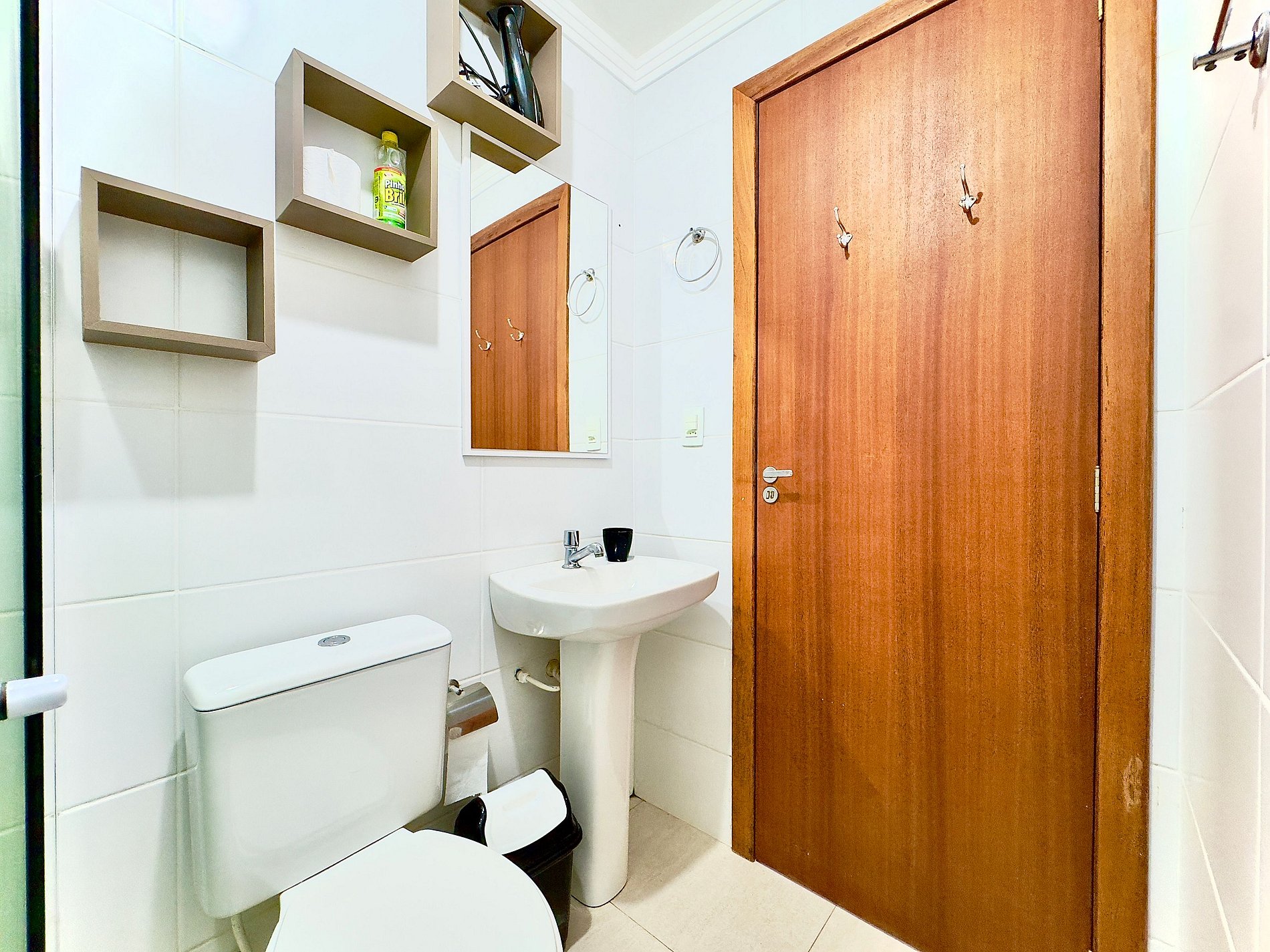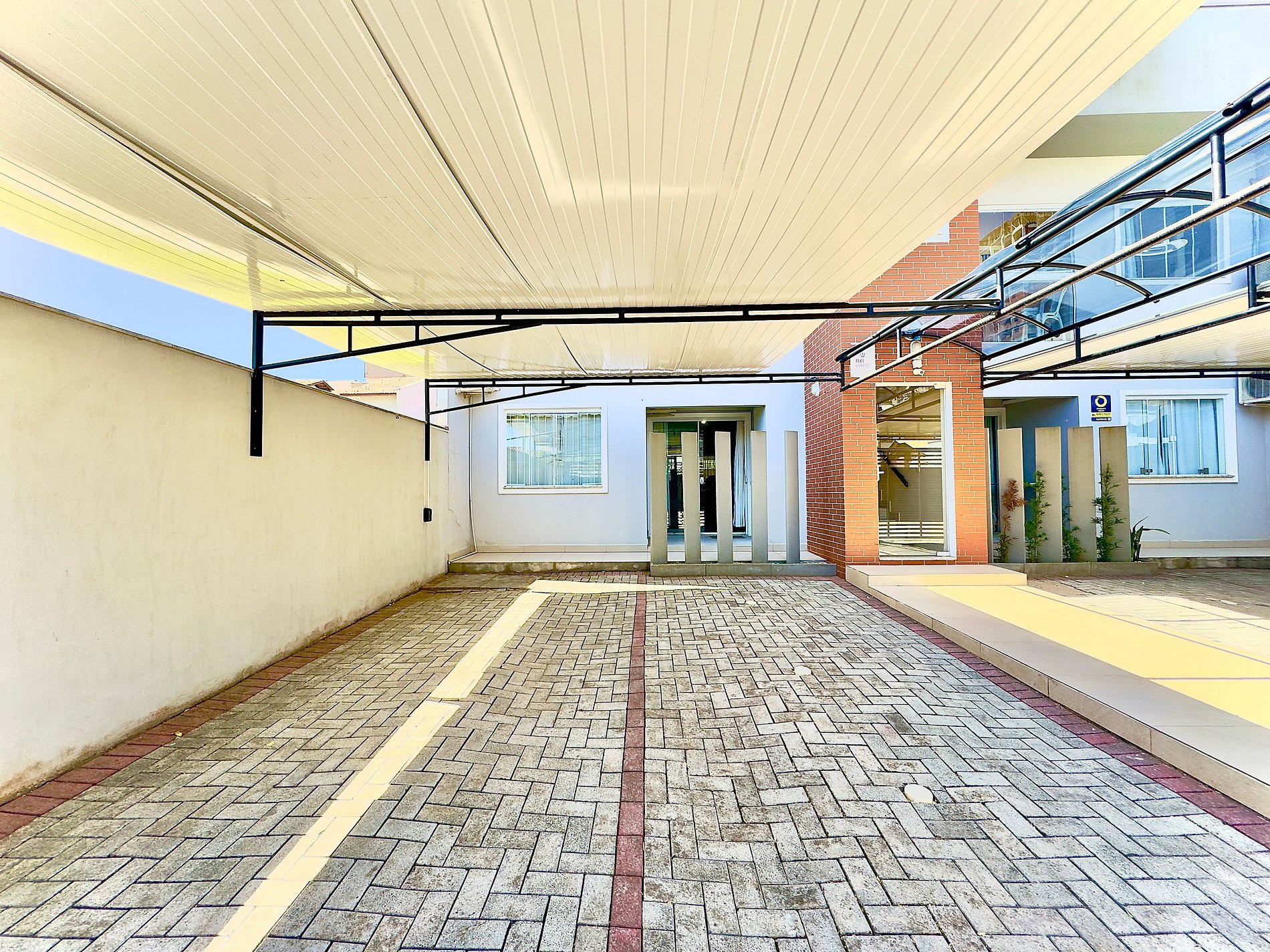 A estrutura conta com vagas de garagem para os apartamentos e chuveiro externo, perfeito para o retorno da praia.