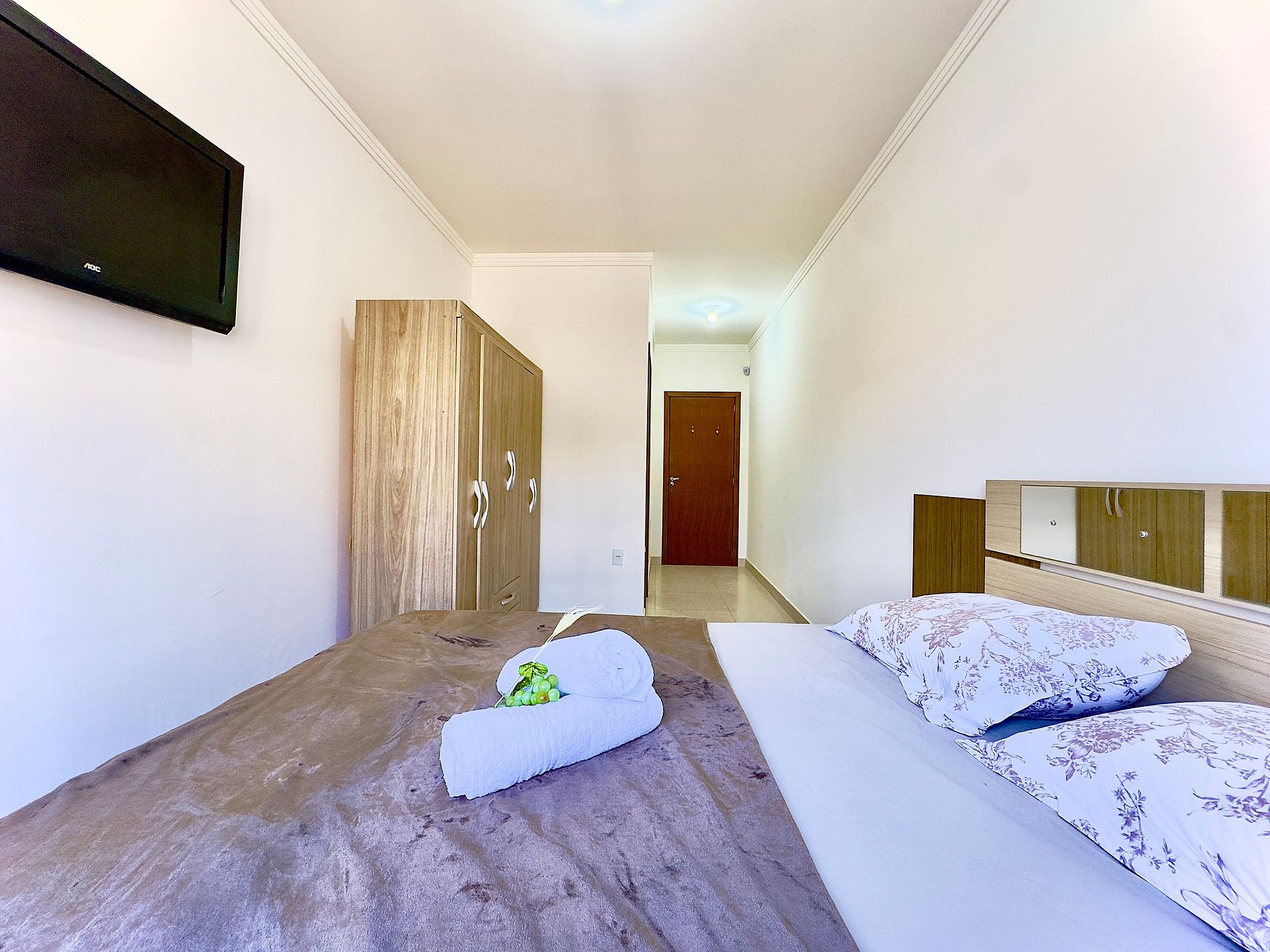 O edifício é simples e acolhedor, ideal para quem busca tranquilidade e praticidade durante a estadia. Localizado em uma rua calma, a apenas 250 metros da praia, oferece fácil acesso à areia e um ambiente familiar.