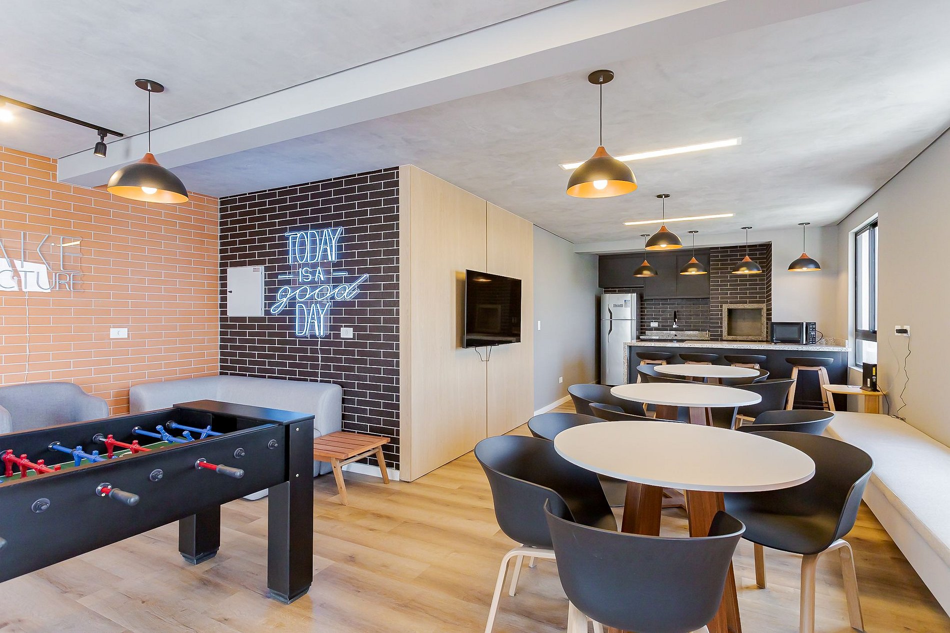 • Áreas Comuns: academia equipada, coworking, terraço com lareira ecológica, lavanderia, Wi-Fi nas áreas comuns, minimercado autônomo, elevadores e segurança 24h.