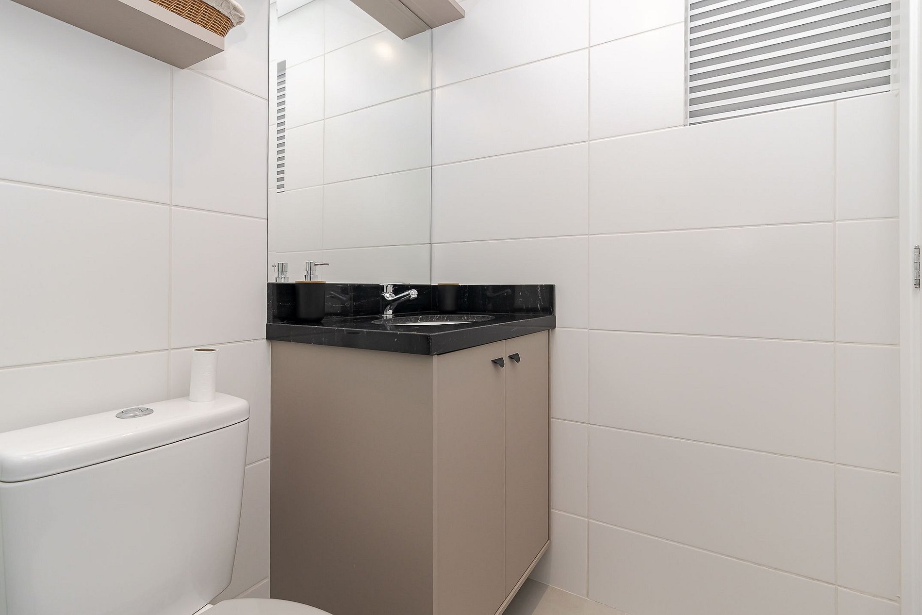 • O apartamento conta ainda com um segundo banheiro completo, também com água quente.