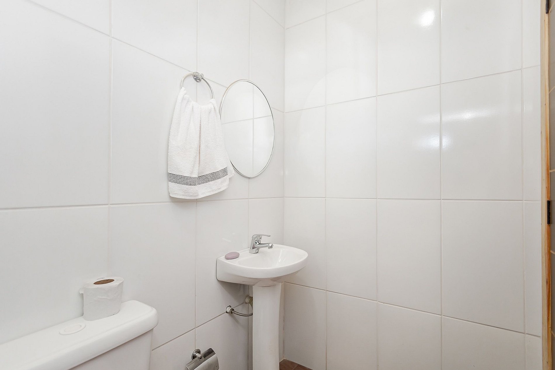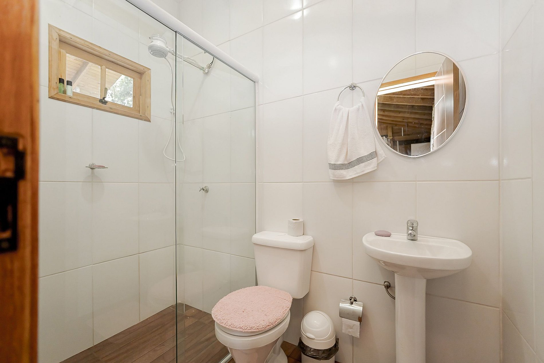 O banheiro conta com água quente para seu conforto.