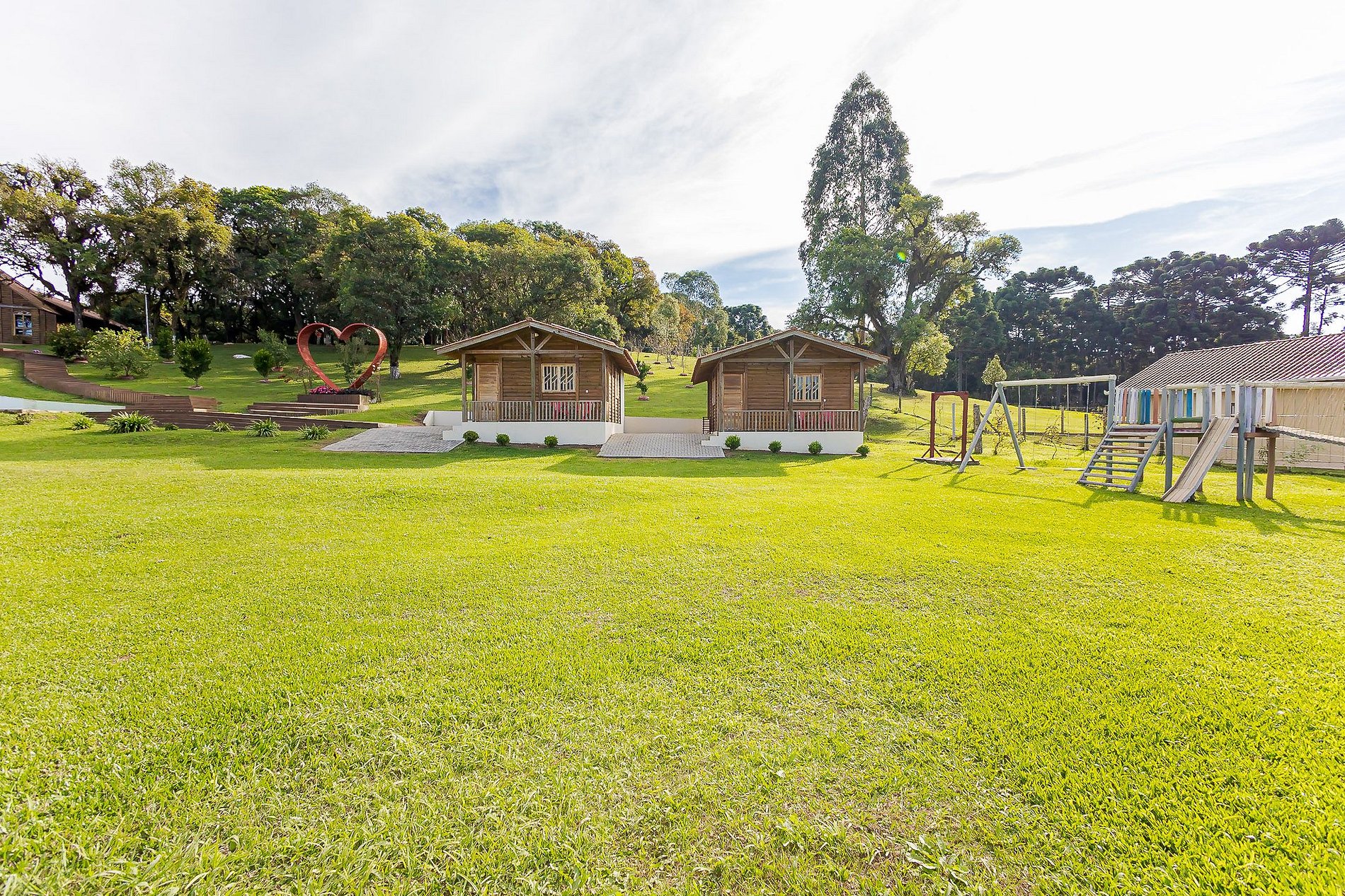 O grande lago é outro atrativo, com opção de pedalinho e pesca liberada, proporcionando uma experiência relaxante em um cenário calmo e acolhedor.