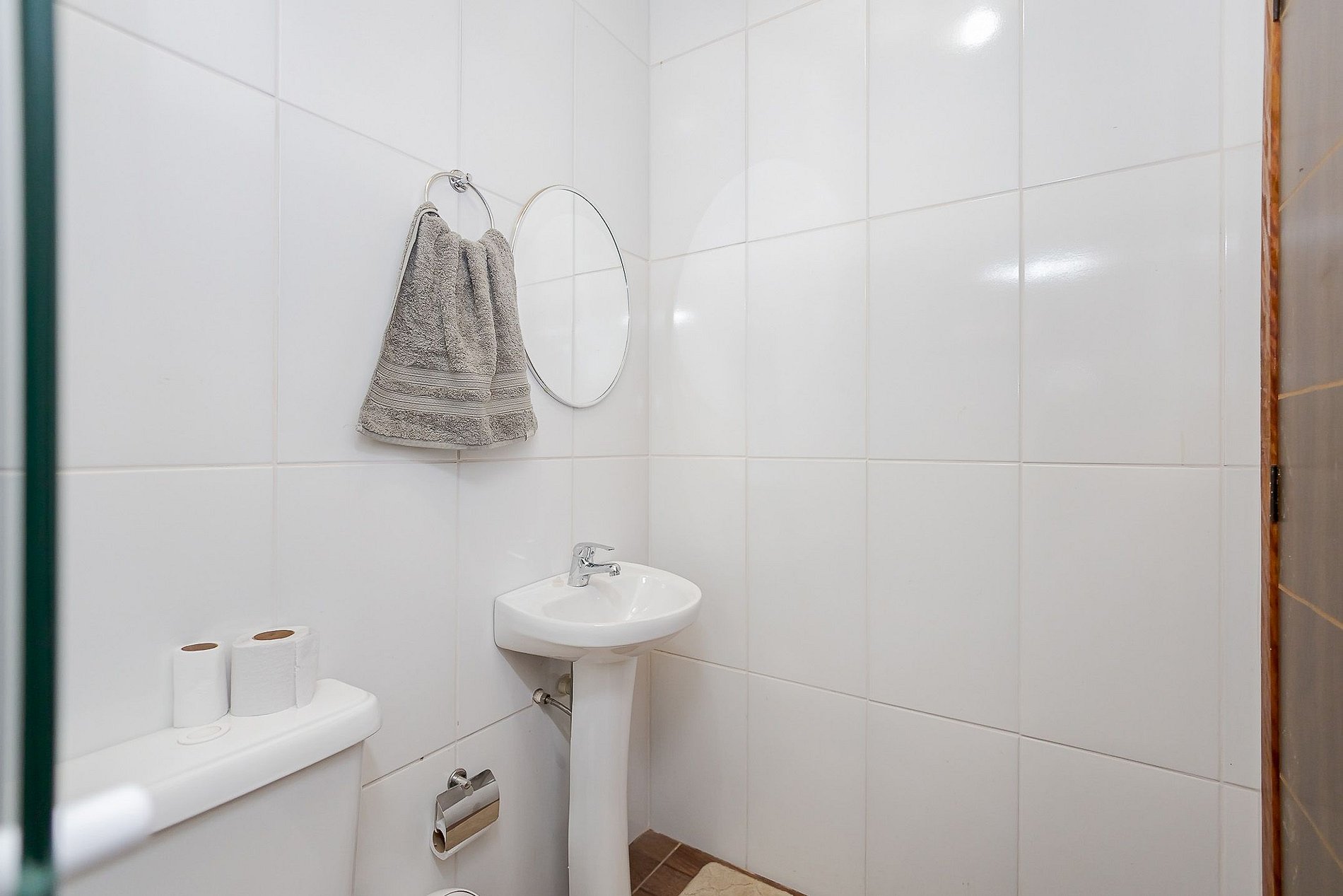 O banheiro conta com água quente para seu conforto.