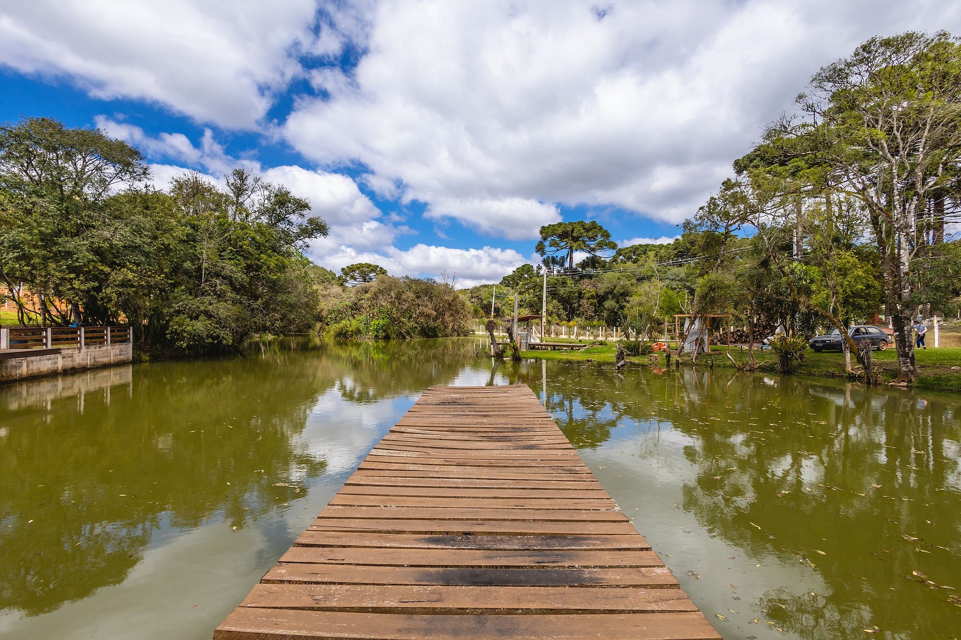 O grande lago é outro atrativo, com opção de pedalinho e pesca liberada, proporcionando uma experiência relaxante em um cenário calmo e acolhedor.