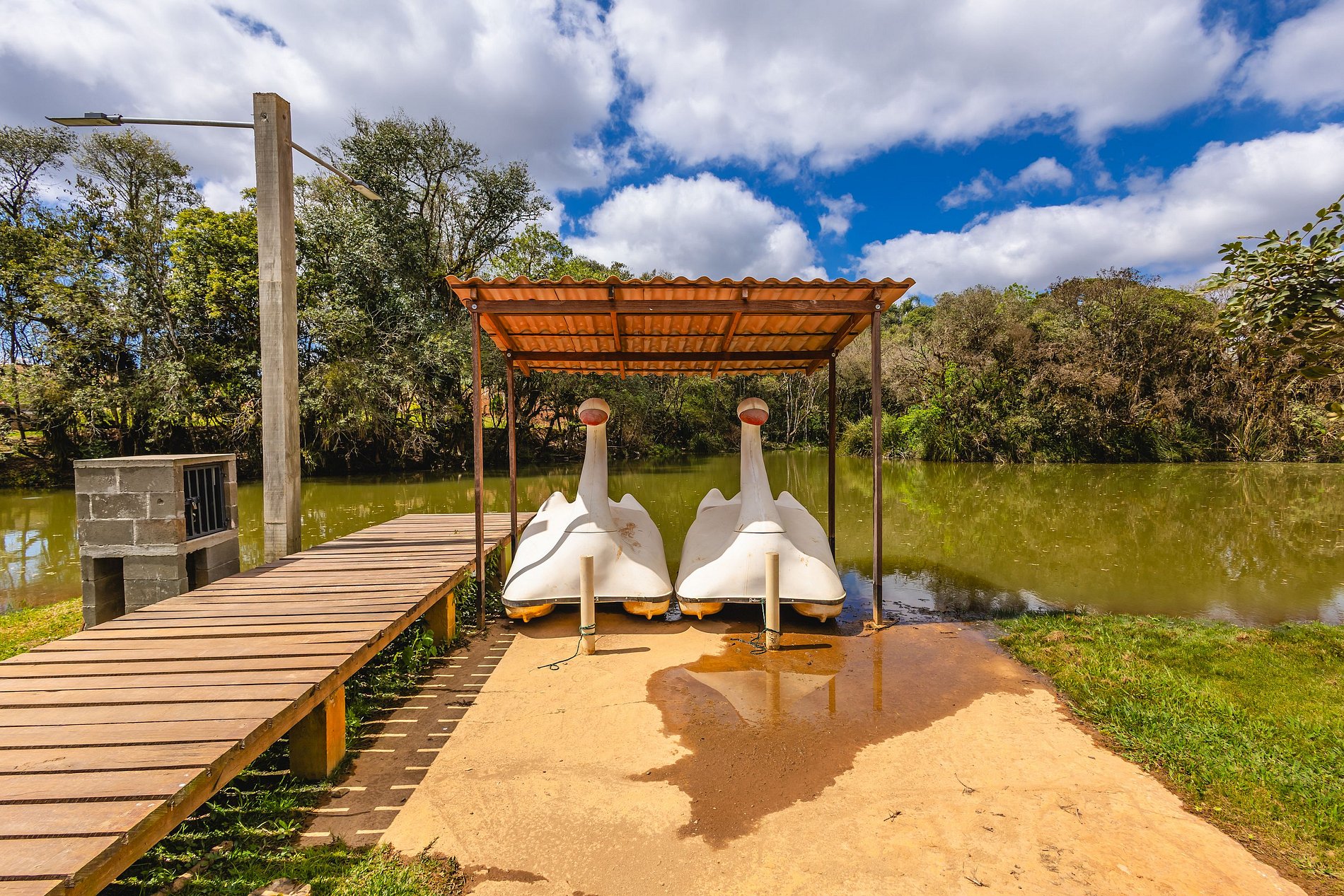 O grande lago é outro atrativo, com opção de pedalinho e pesca liberada, proporcionando uma experiência relaxante em um cenário calmo e acolhedor.