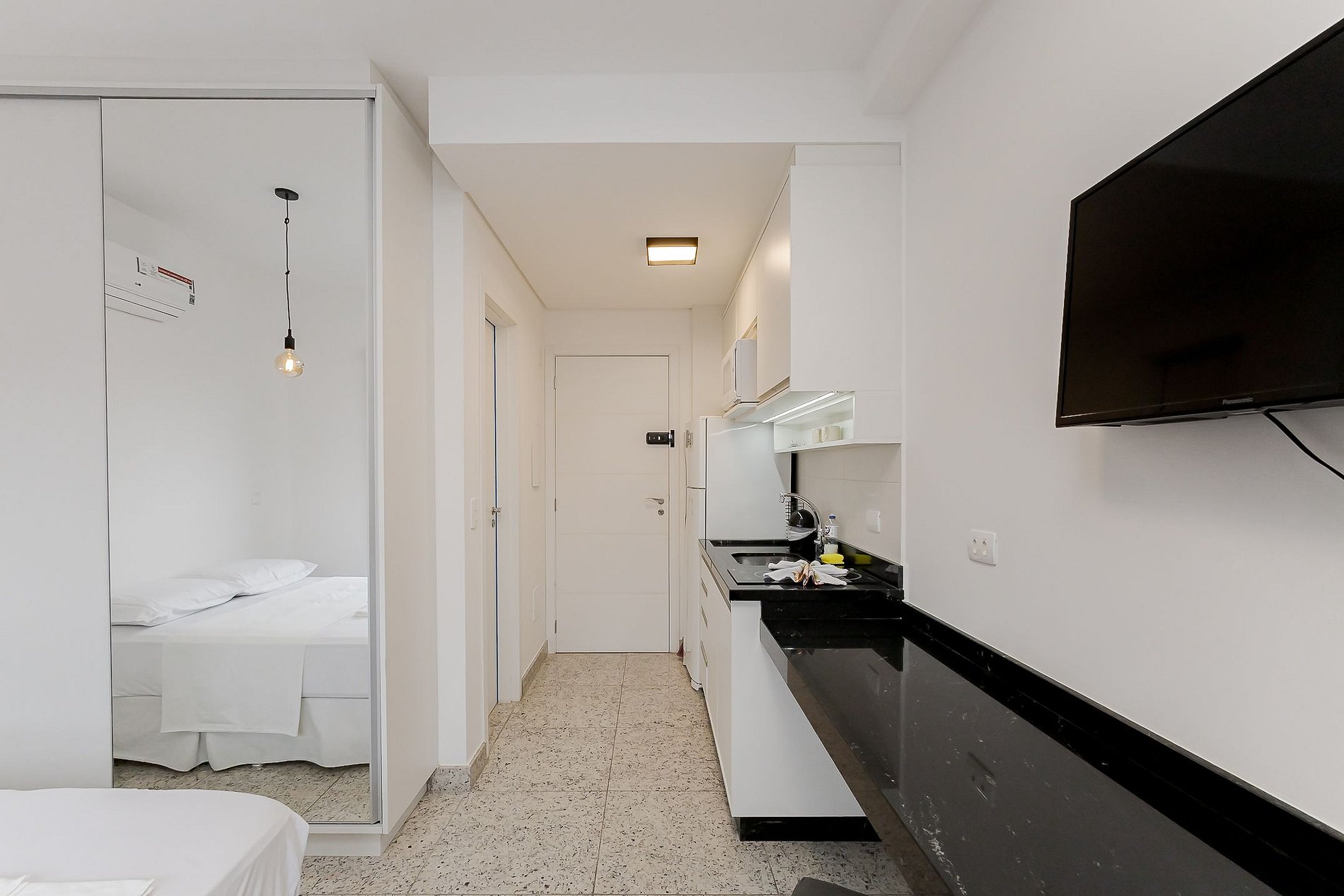 Estúdio compacto e bem equipado no CWBe Residencial, localizado no coração do bairro Rebouças, em Curitiba.