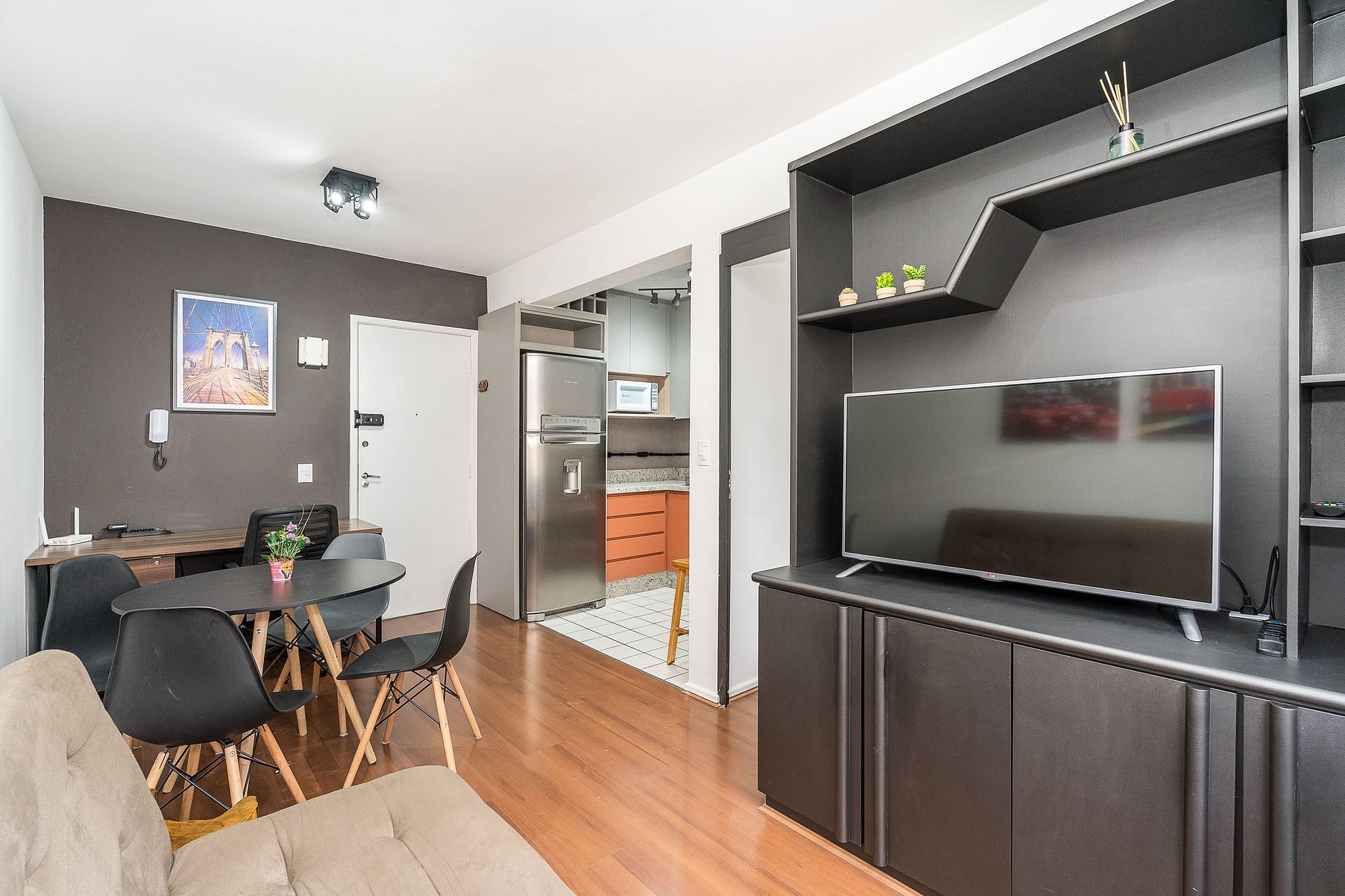 Seja envolvido pelo conforto no nosso espaço. Prédio acessível com lavanderia próxima, portaria 24h e elevador. Desfrute de 1 quarto ensolarado, sala ampla e aconchegante, espaço de trabalho conveniente e cozinha completa. Sua estadia completa começa aqui.