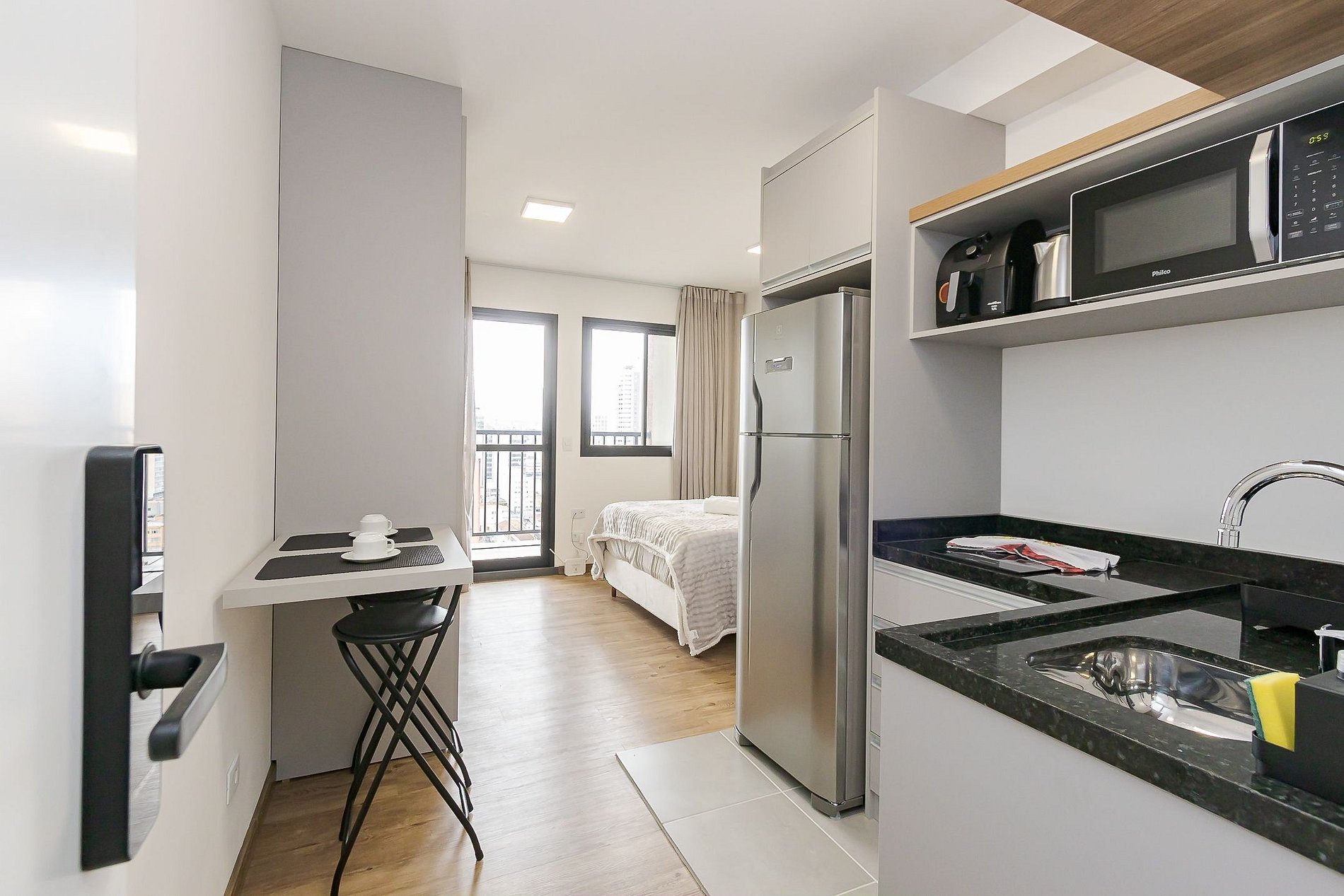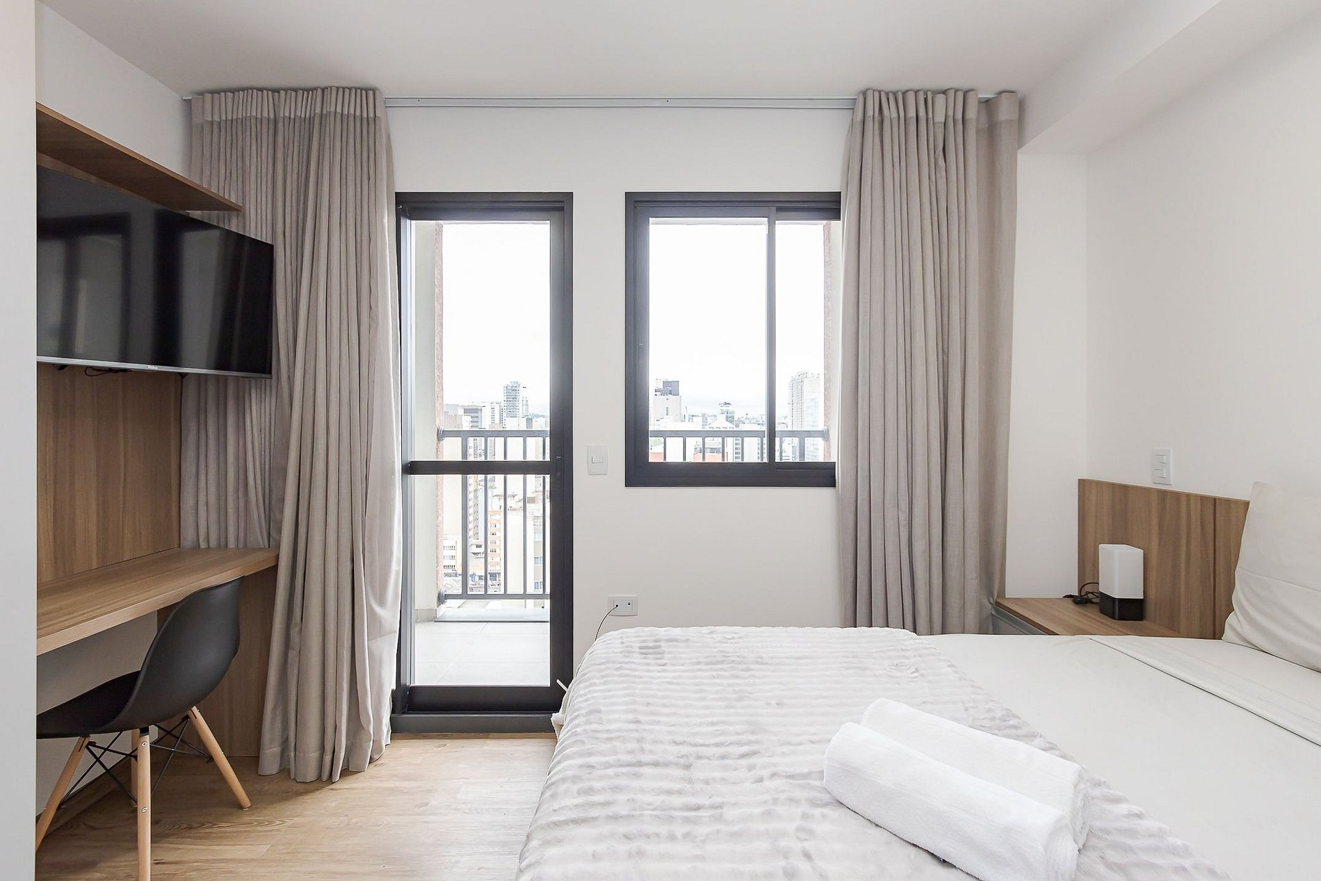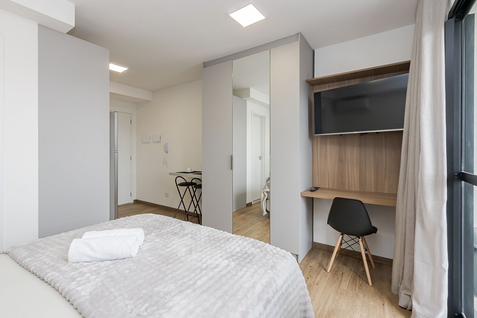 Estúdio moderno e bem equipado no Ibiza Unique Home, na R. Tibagi, 740 no Centro de Curitiba.