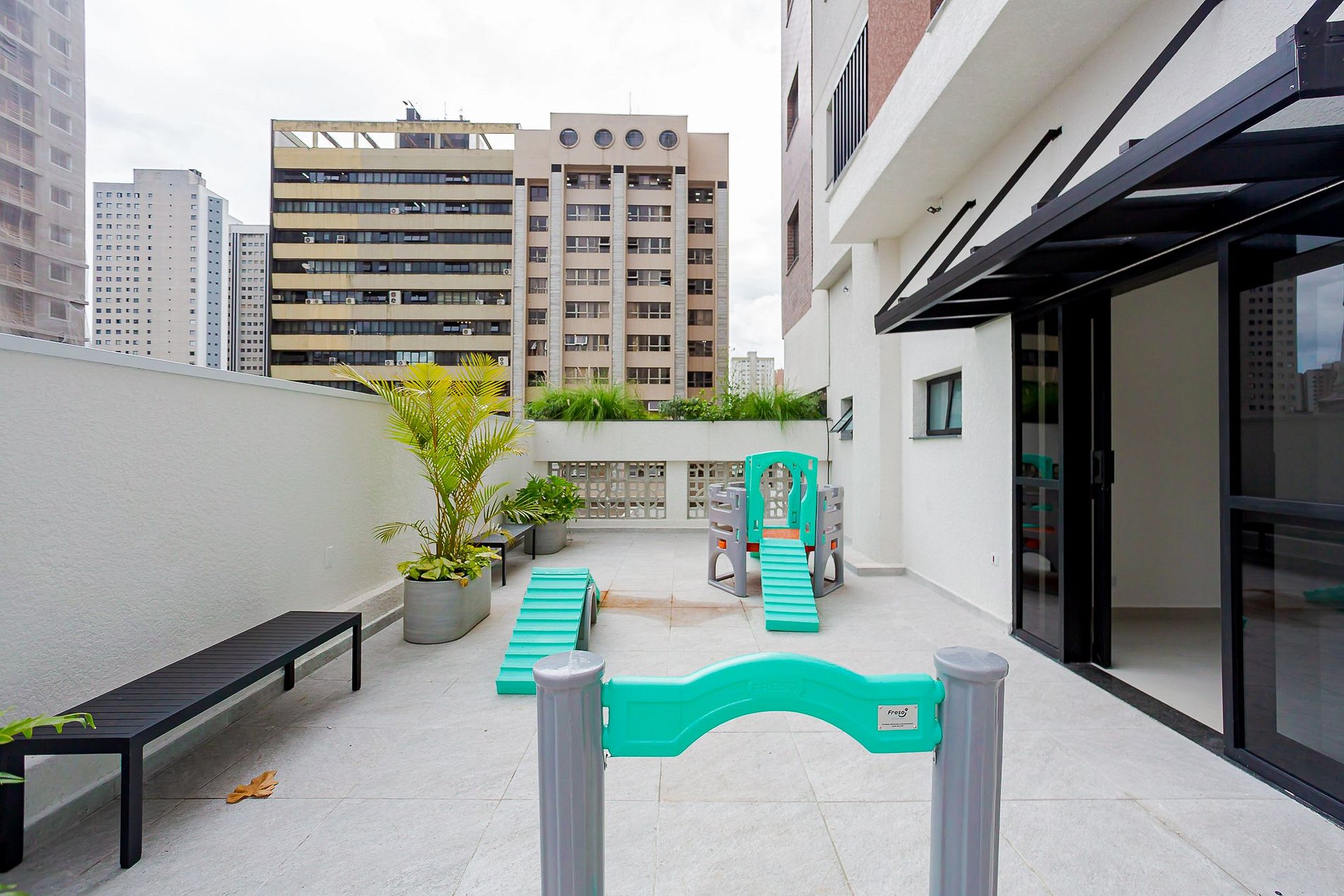 O prédio oferece elevador, lavanderia compartilhada com máquinas de lavar e secar da Omo, coworking com internet para quem precisa trabalhar remotamente, sala de jogos para momentos de descontração e um espaço ao ar livre dedicado às crianças, ideal para quem viaja em família.