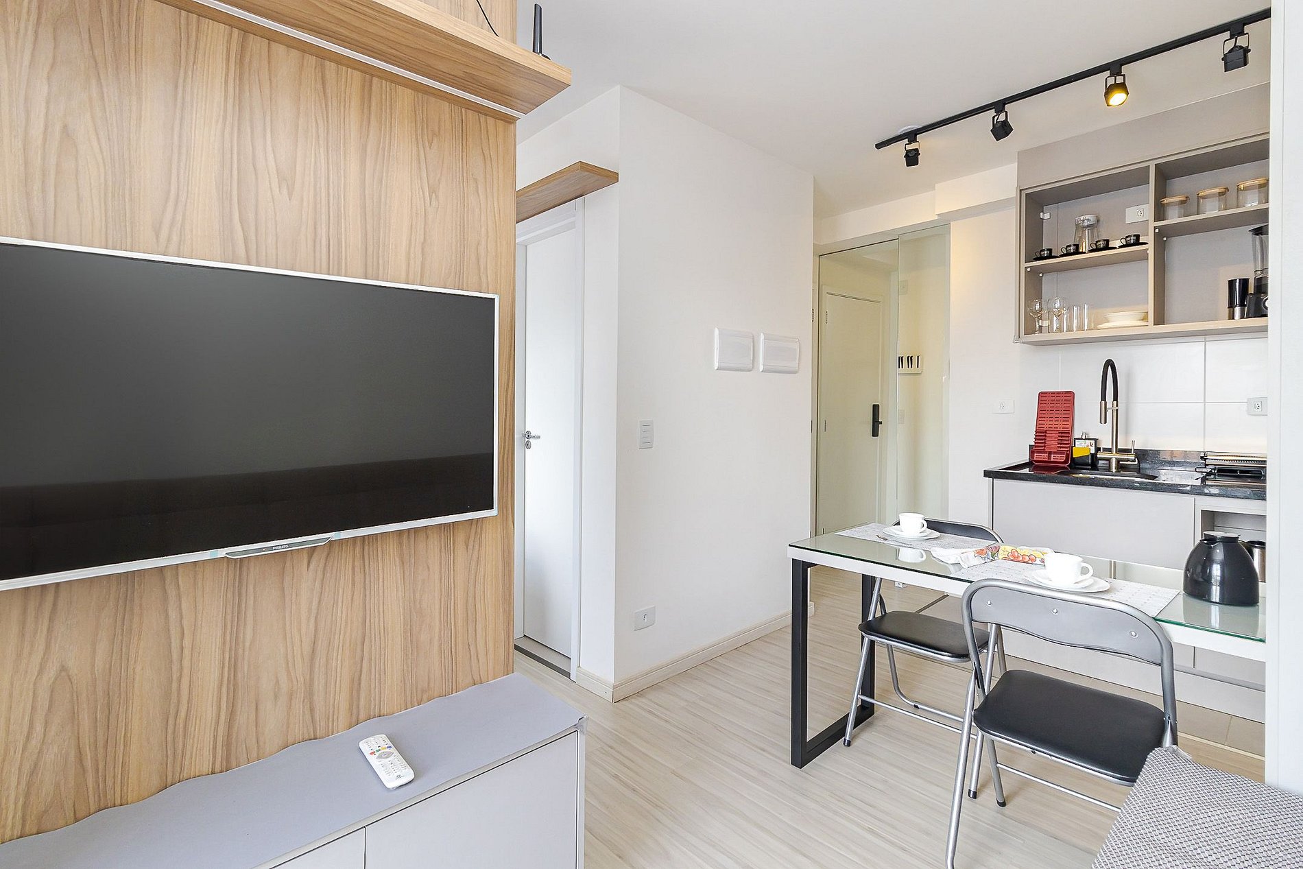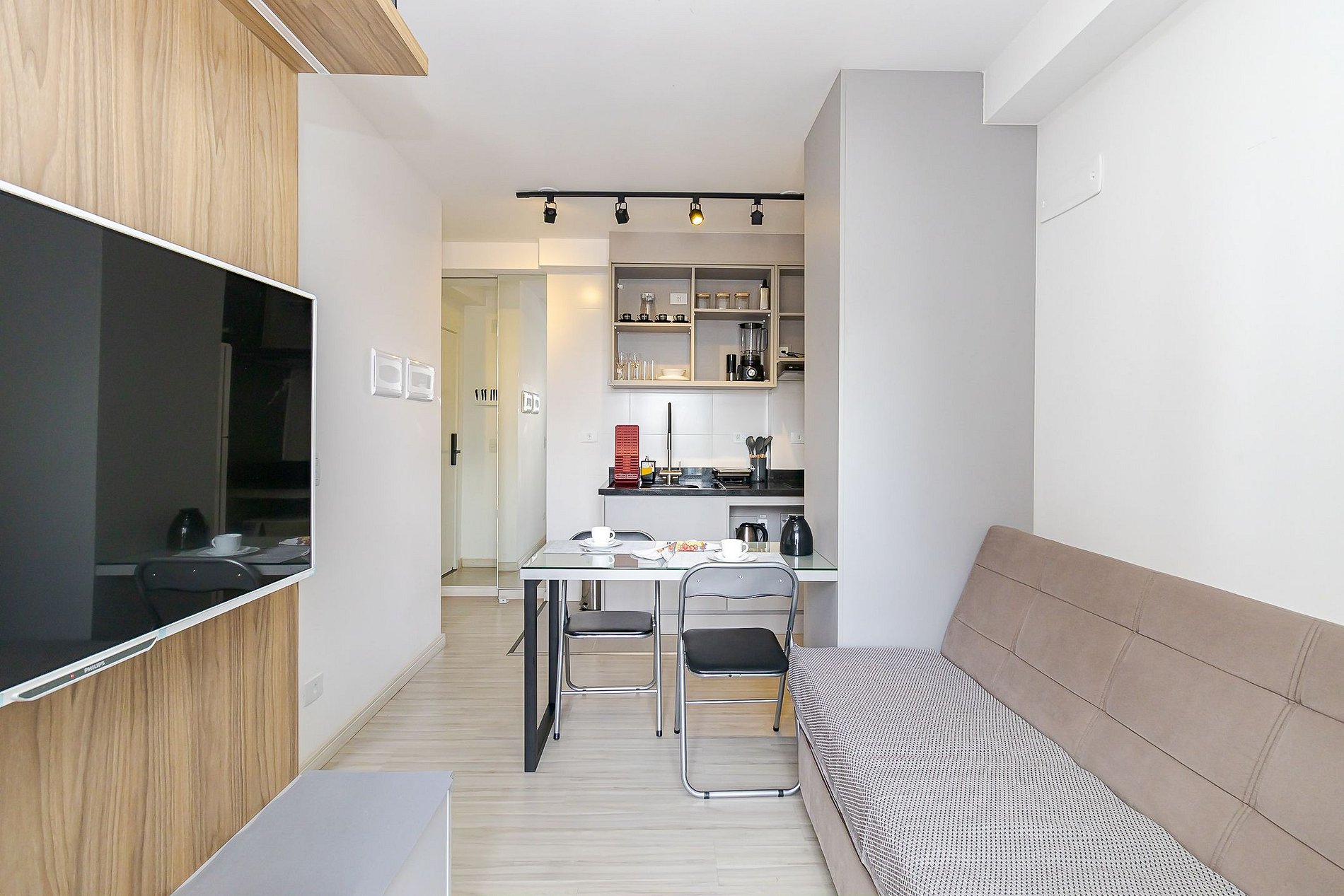 Estúdio moderno e bem equipado no Ibiza Unique Home, na R. Tibagi, 740 no Centro de Curitiba.