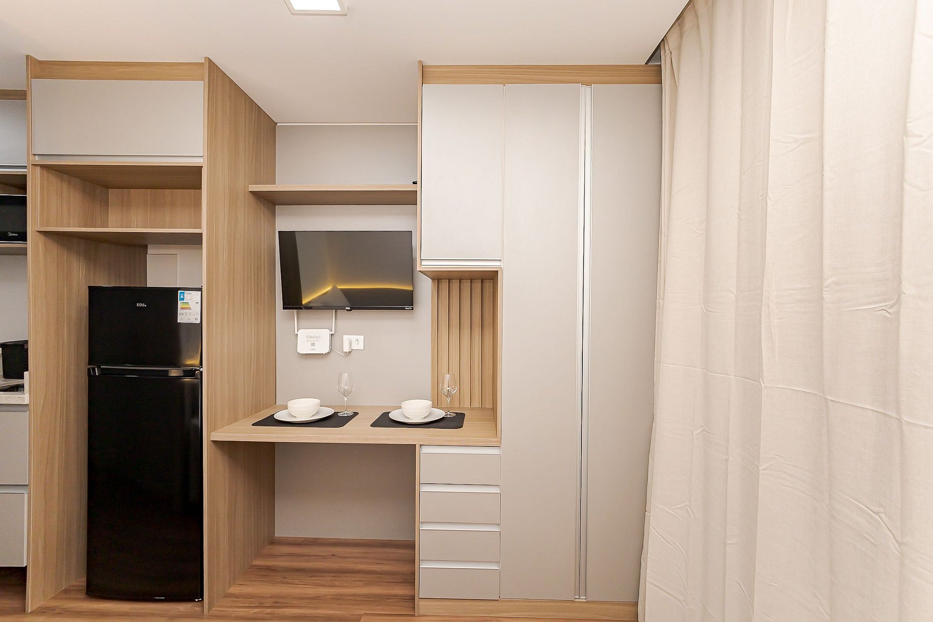 Este estúdio compacto de 19m² é ideal para quem busca uma estadia prática, aconchegante e funcional no Batel.