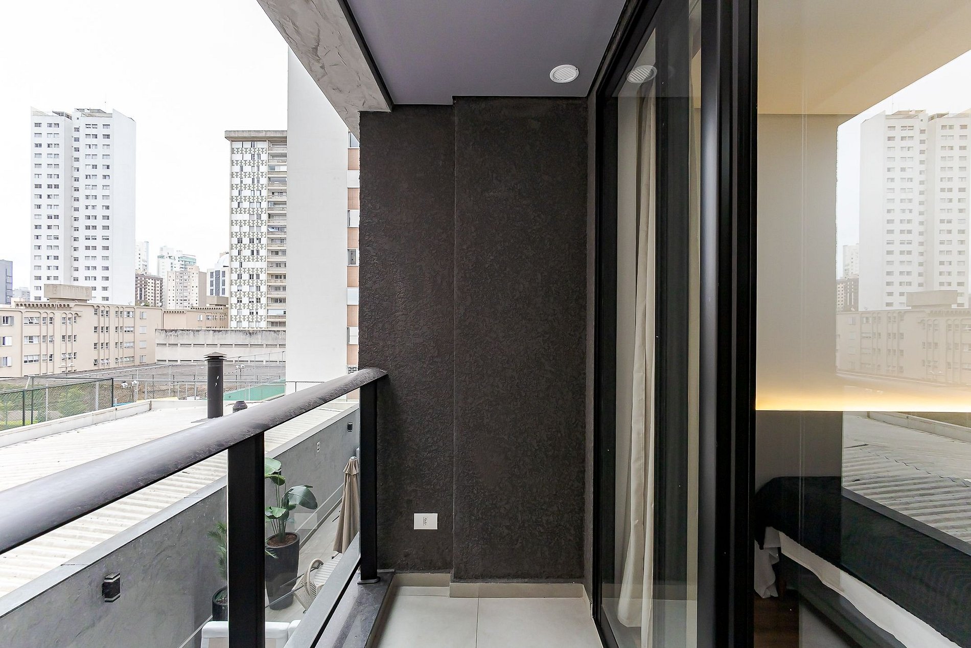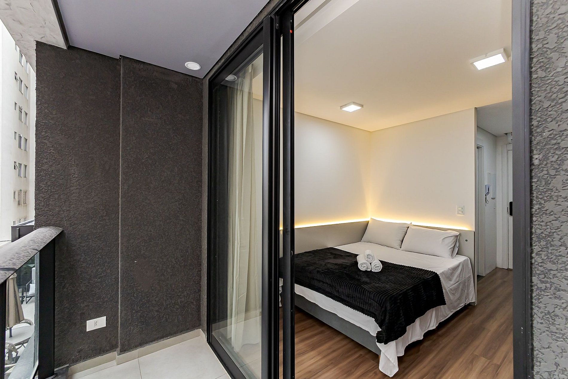 Studio moderno com varanda no Diamond Tower Batel, na Rua Castro Alves, 535, um dos endereços mais sofisticados de Curitiba.
