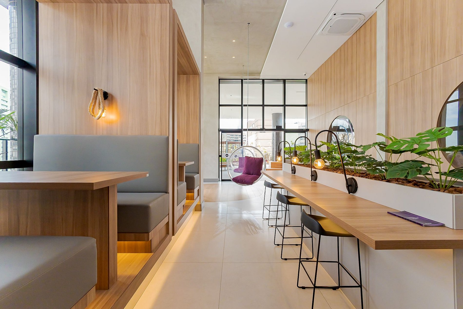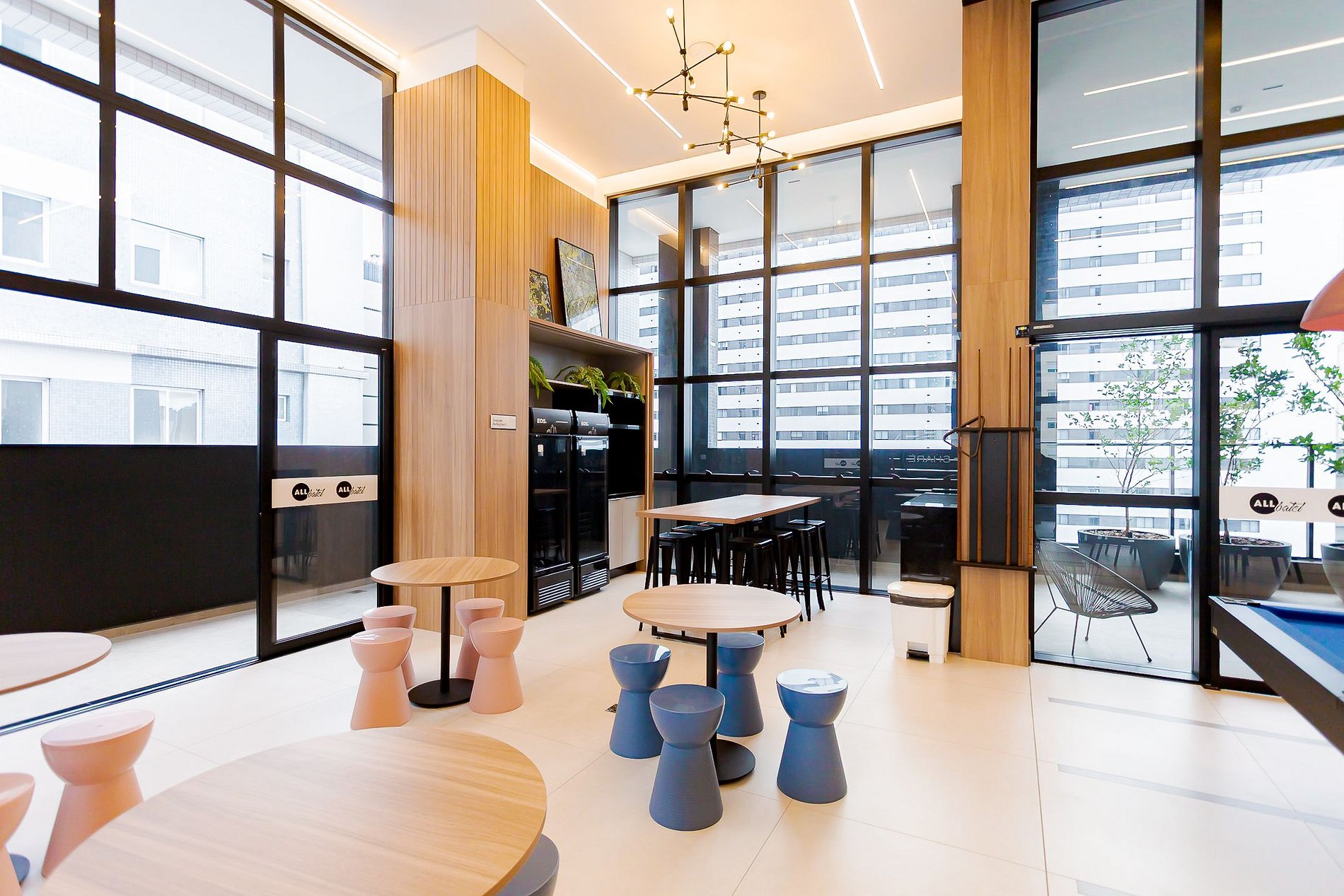 Ideal para estadias de curta ou longa duração, o edifício oferece uma estrutura completa para lazer, trabalho e bem-estar. No 19º andar, os hóspedes podem relaxar na piscina com vista panorâmica da cidade ou manter a rotina de treinos na academia. O coworking e o salão de jogos, localizados no 11º andar, tornam o ambiente versátil para quem vem a trabalho ou busca entretenimento.