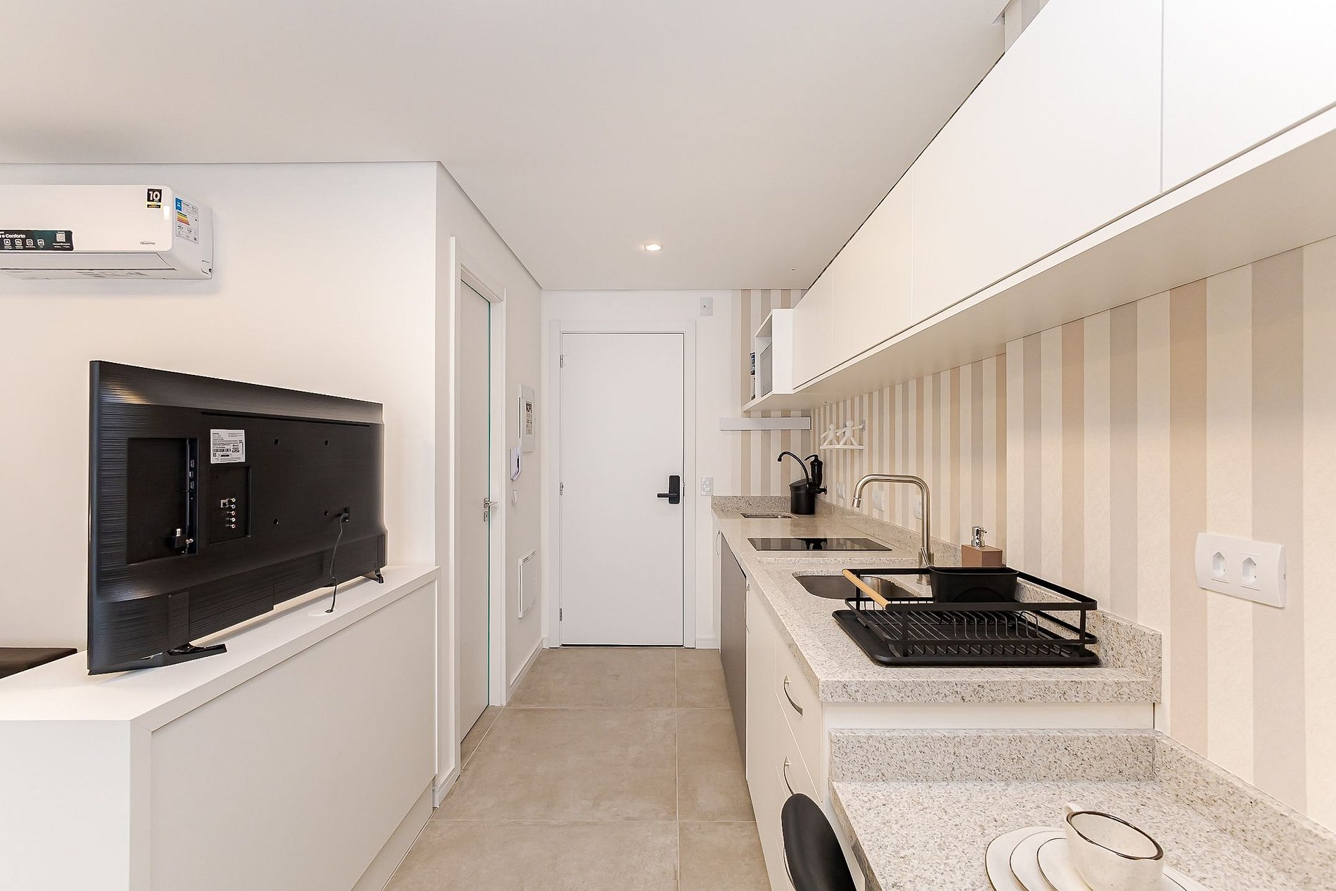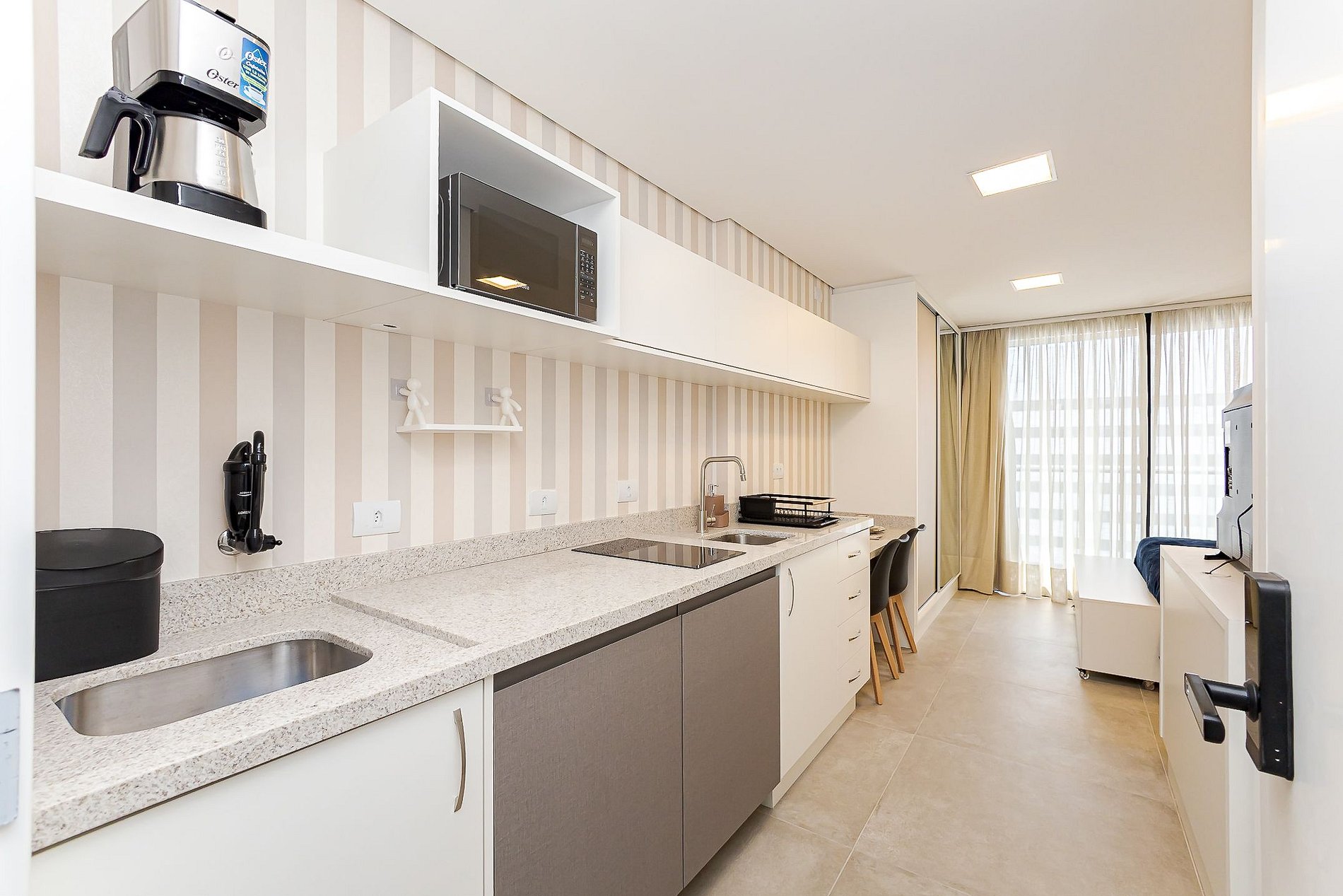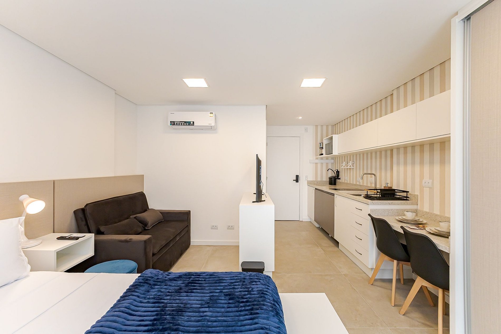 Estúdio moderno e funcional no All Batel, condomínio completo e muito bem localizado no Centro de Curitiba, a poucos metros da Rua 24 Horas, Shopping Curitiba e FAE Business School.