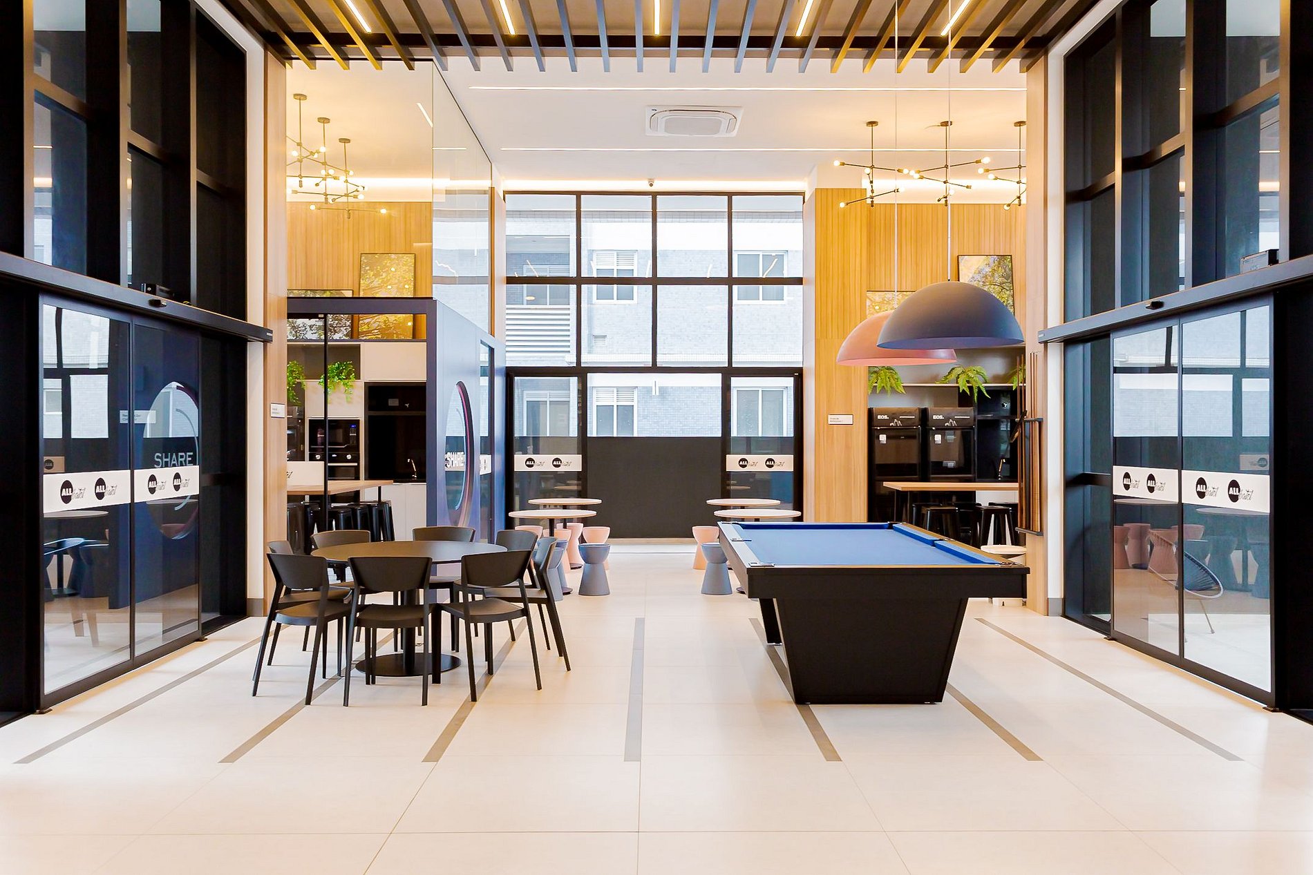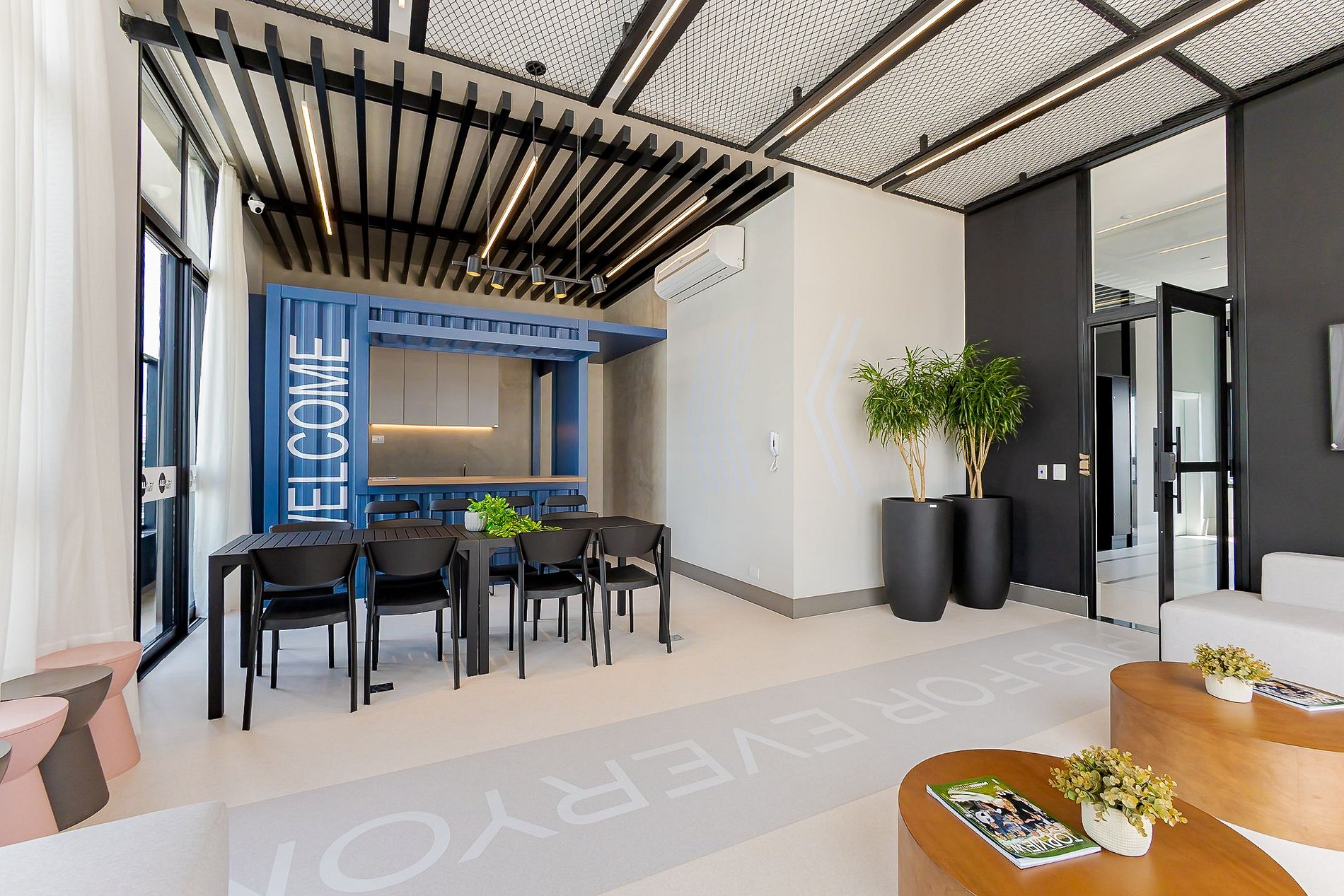 O condomínio oferece piscina, academia, coworking, lavanderia OMO, mercadinho autônomo e outras comodidades.