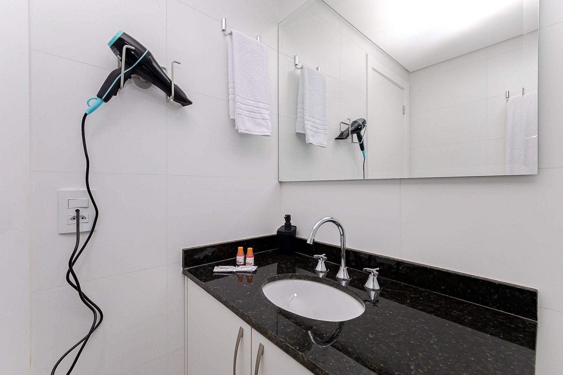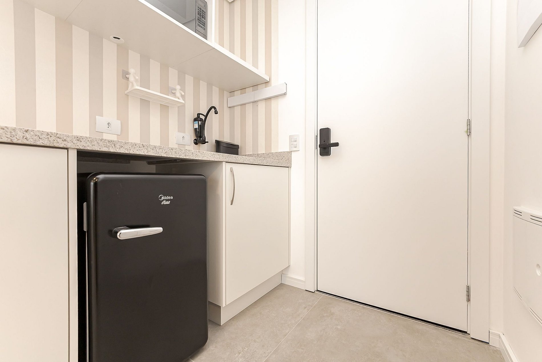 O prédio ainda conta com lavanderia OMO 24h (paga à parte), máquinas de vendas automáticas, lixeiras acessíveis e estacionamento terceirizado na mesma quadra.