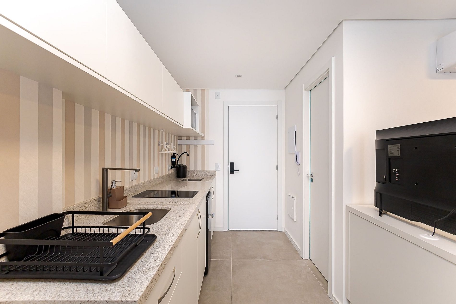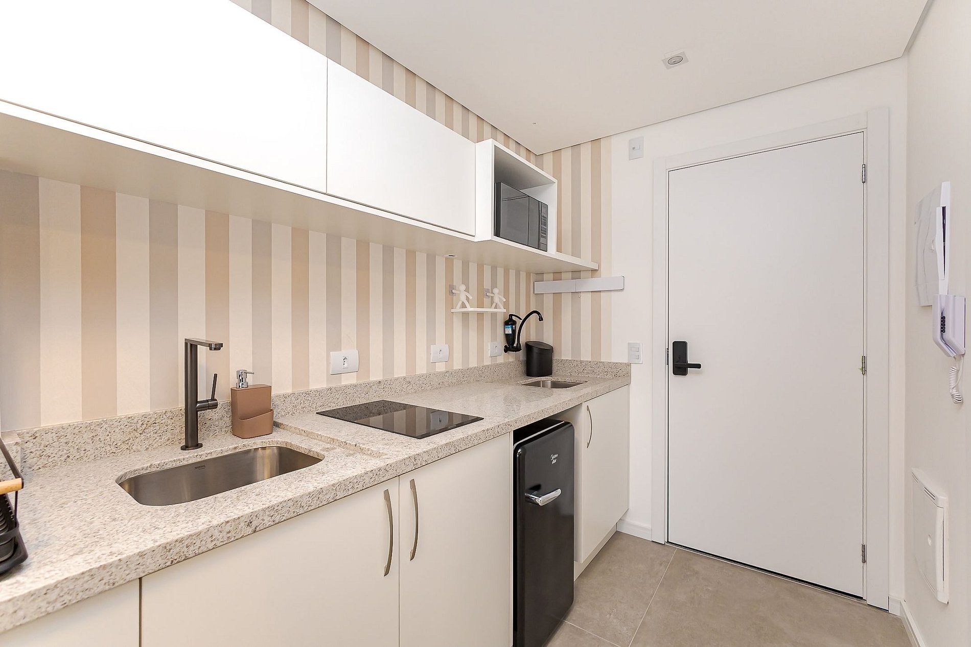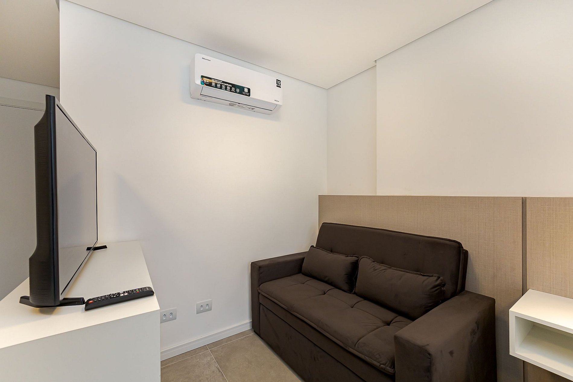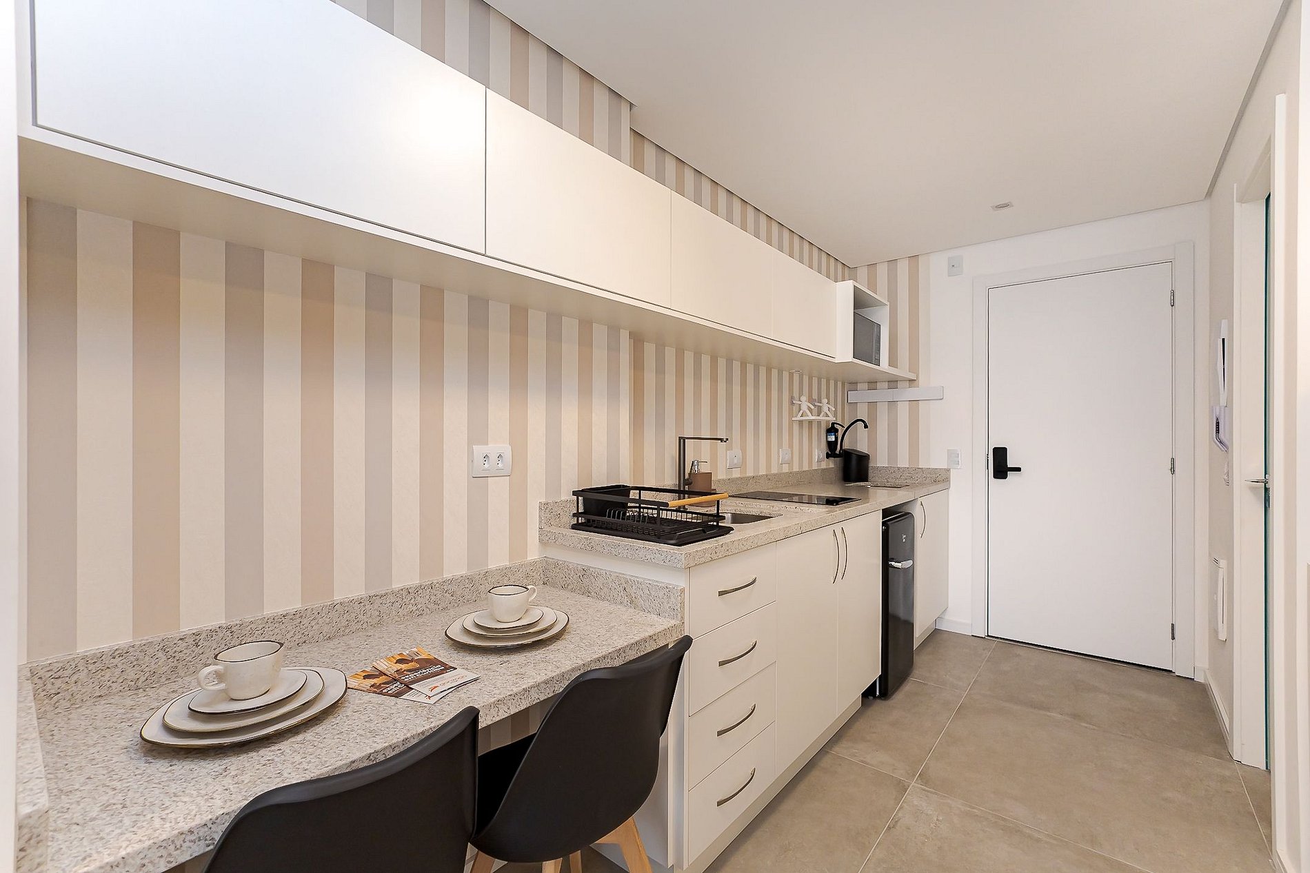 Estúdio moderno e funcional no All Batel, condomínio completo e muito bem localizado no Centro de Curitiba, a poucos metros da Rua 24 Horas, Shopping Curitiba e FAE Business School.