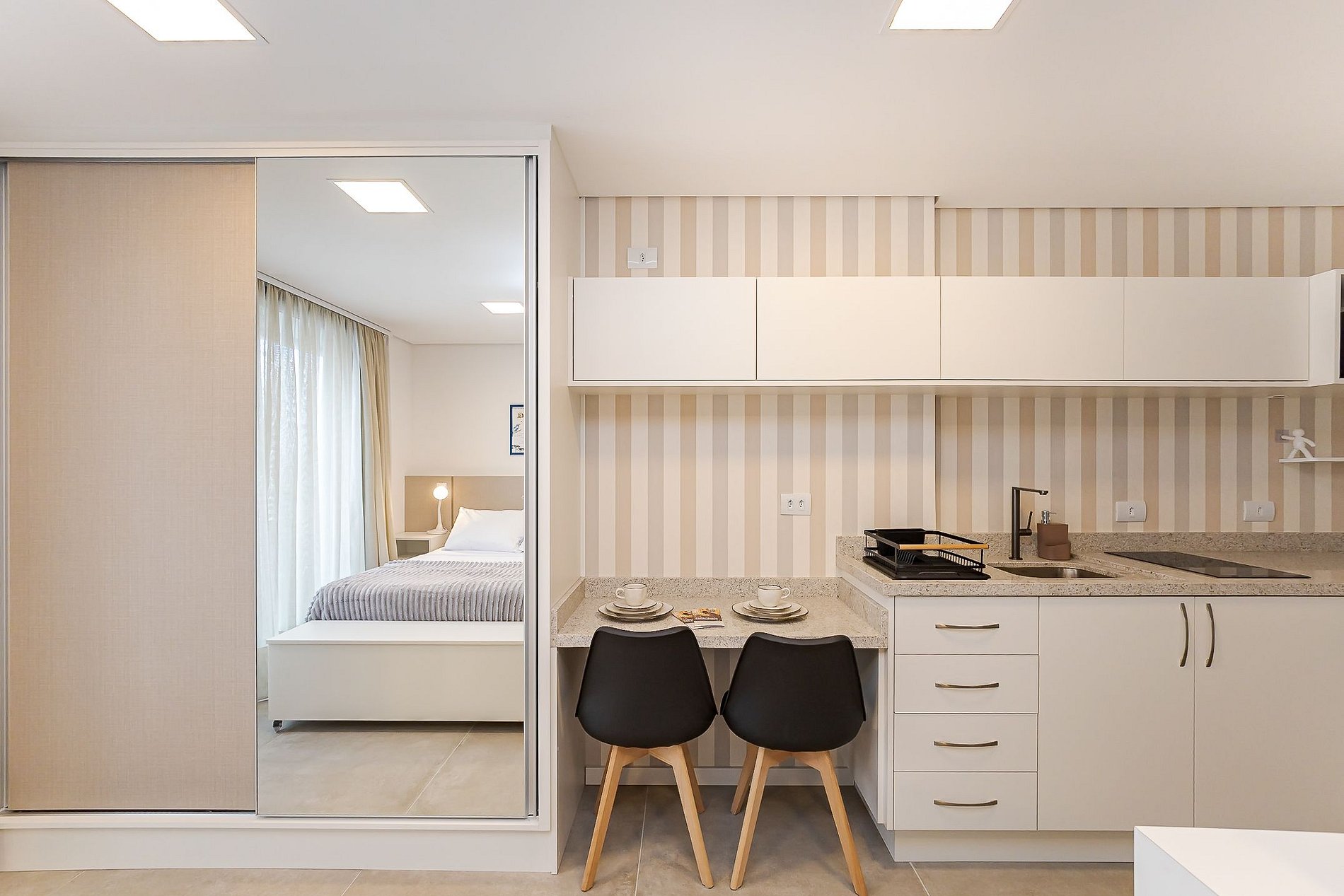 O estúdio G010 oferece um ambiente integrado, moderno e acolhedor, ideal para quem busca conforto e praticidade.