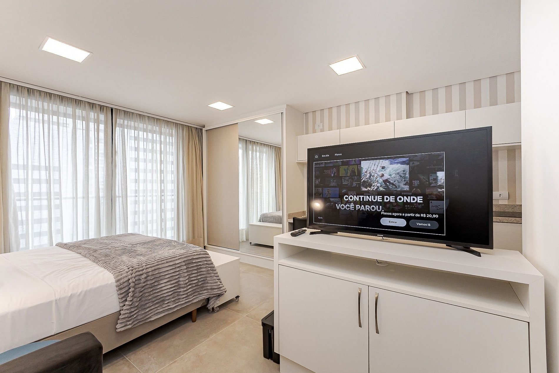 Com ambientes integrados e varanda com vista da cidade, o imóvel oferece conforto e praticidade para quem viaja a lazer ou trabalho. Conta com cozinha equipada, ar-condicionado, TV Smart e cama queen.