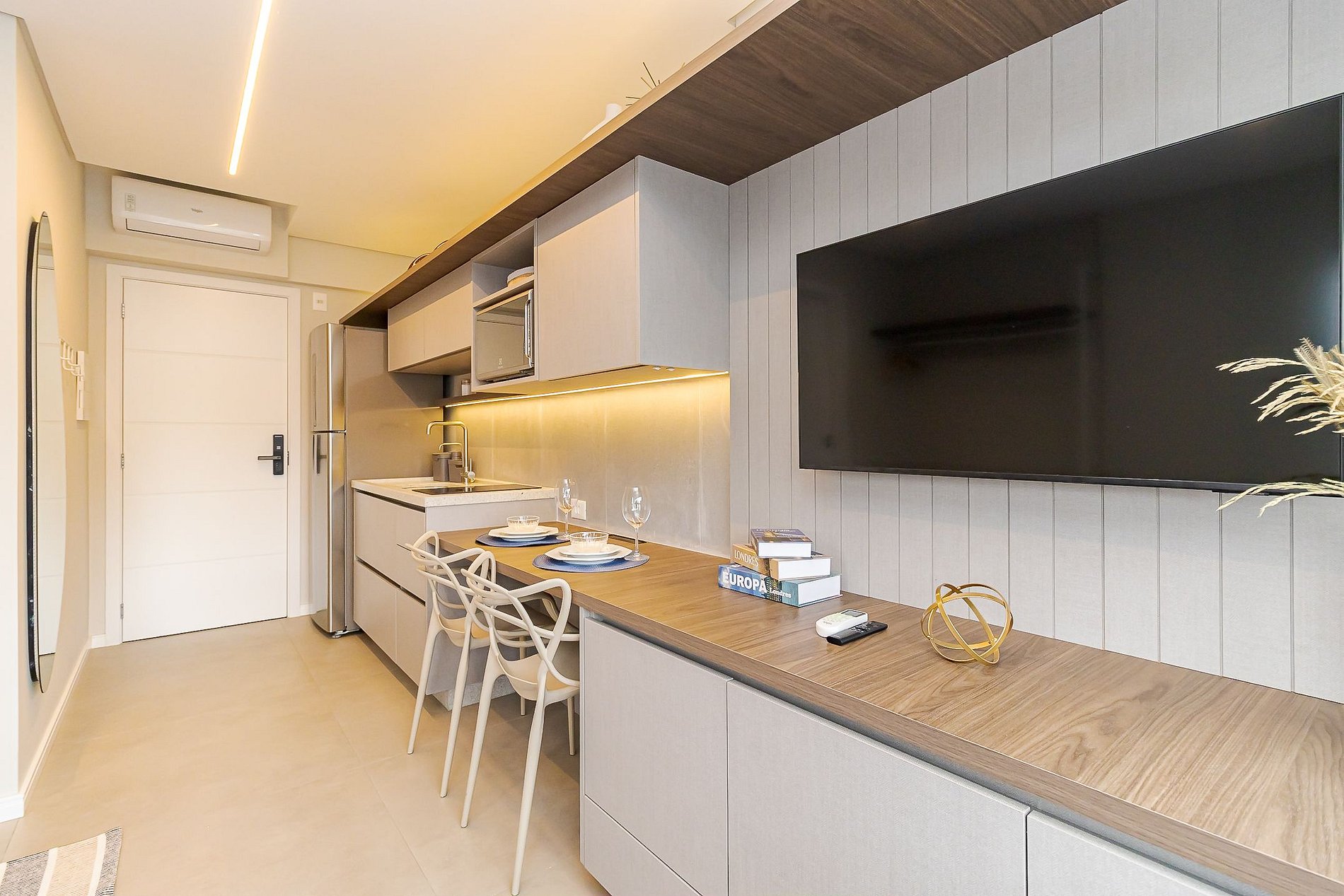 Estúdio moderno e bem decorado no Join Batel, localizado em uma das regiões mais nobres de Curitiba, entre o Água Verde e o Batel.