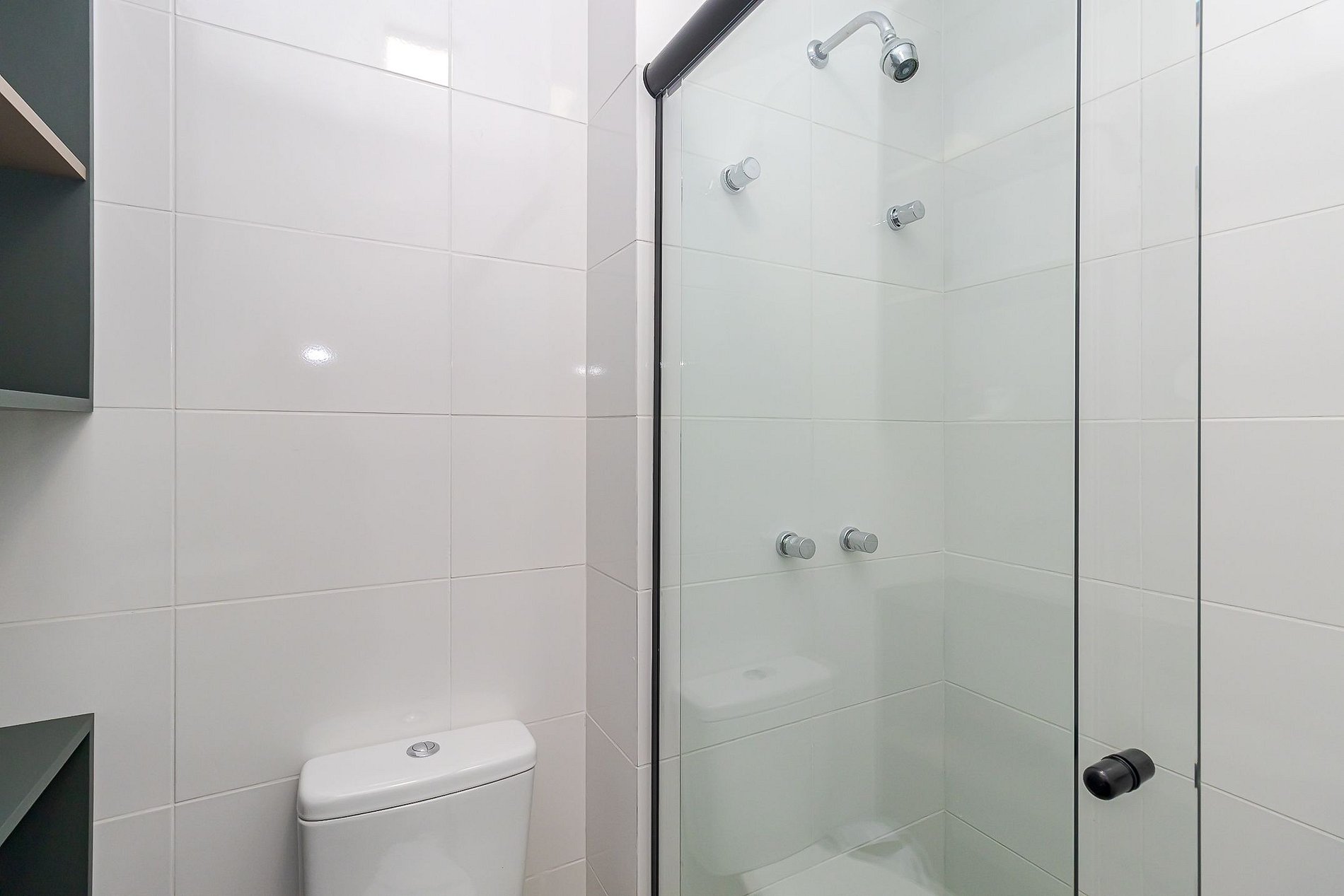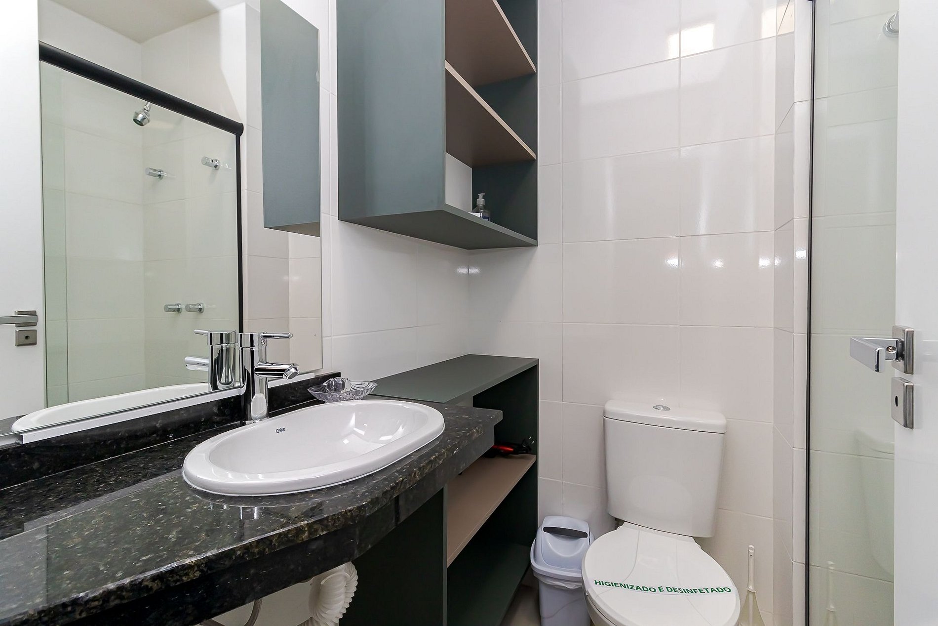 • Banheiro: chuveiro com água quente, box de vidro, secador de cabelo e espelho.
