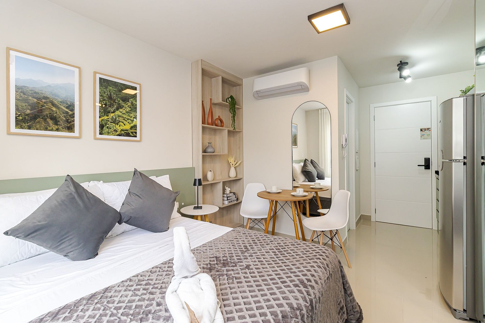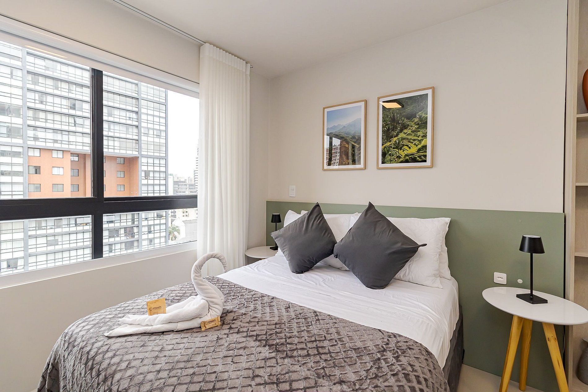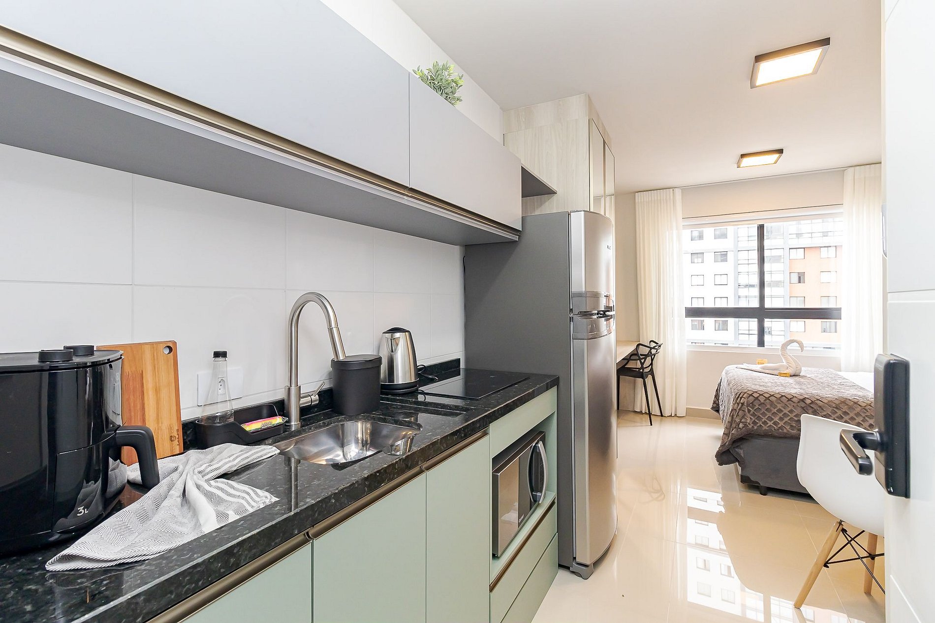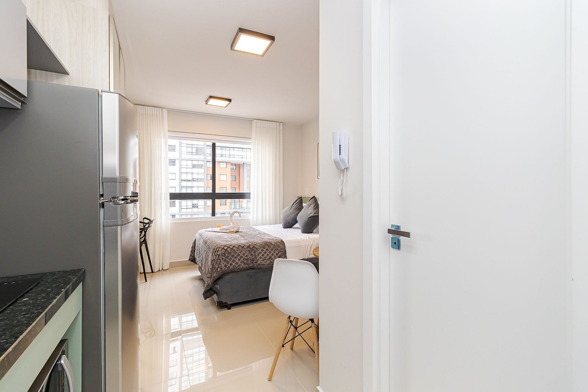 Estúdio moderno no MUV Residence, na Av. Visconde de Guarapuava, em área central de Curitiba.