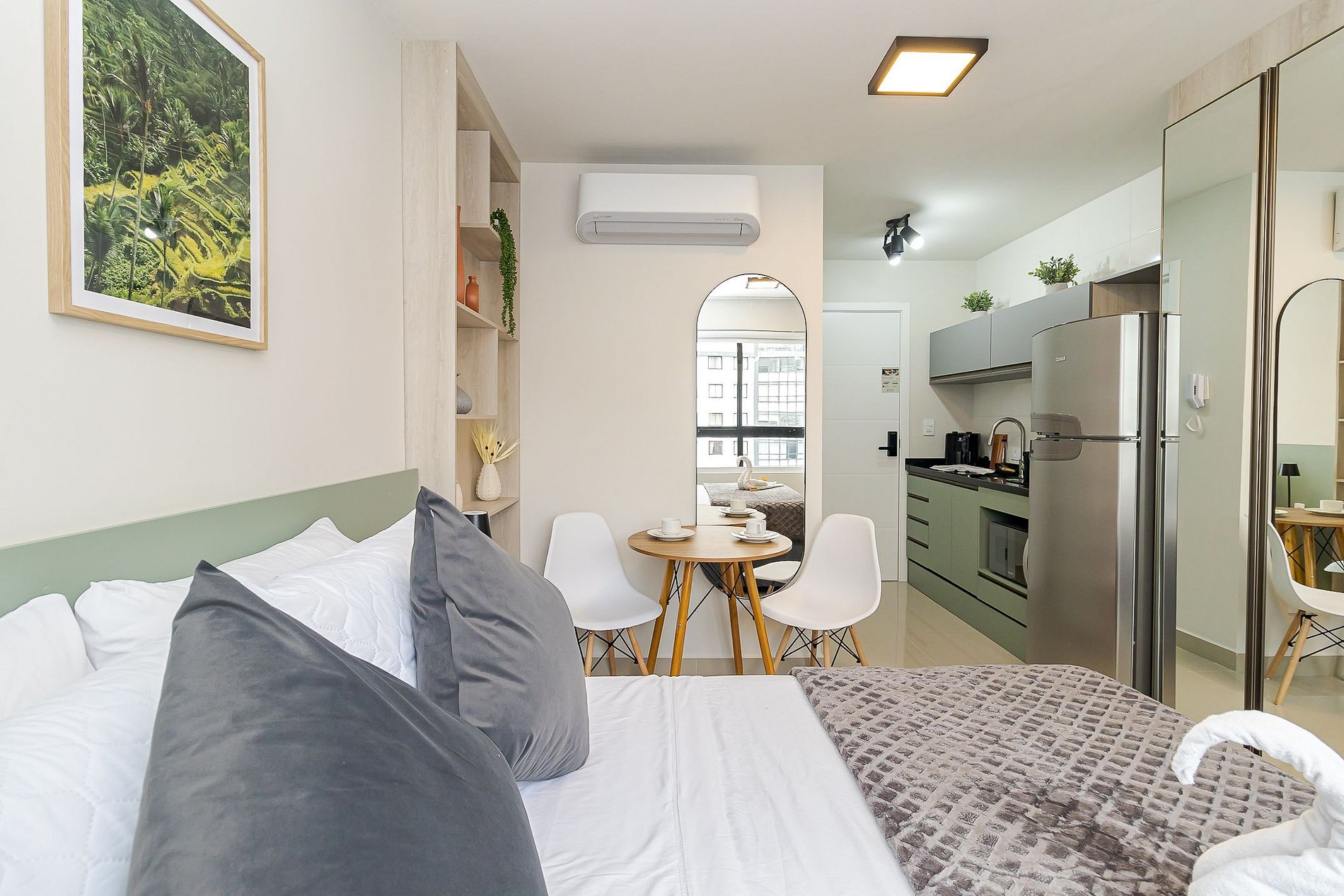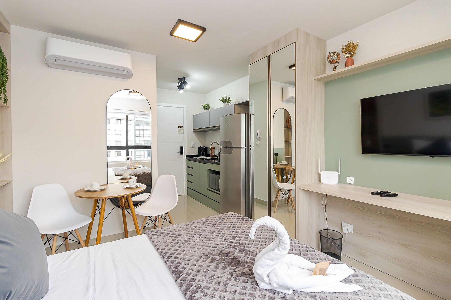 Estúdio compacto, charmoso e bem equipado, perfeito para descansar e aproveitar Curitiba.