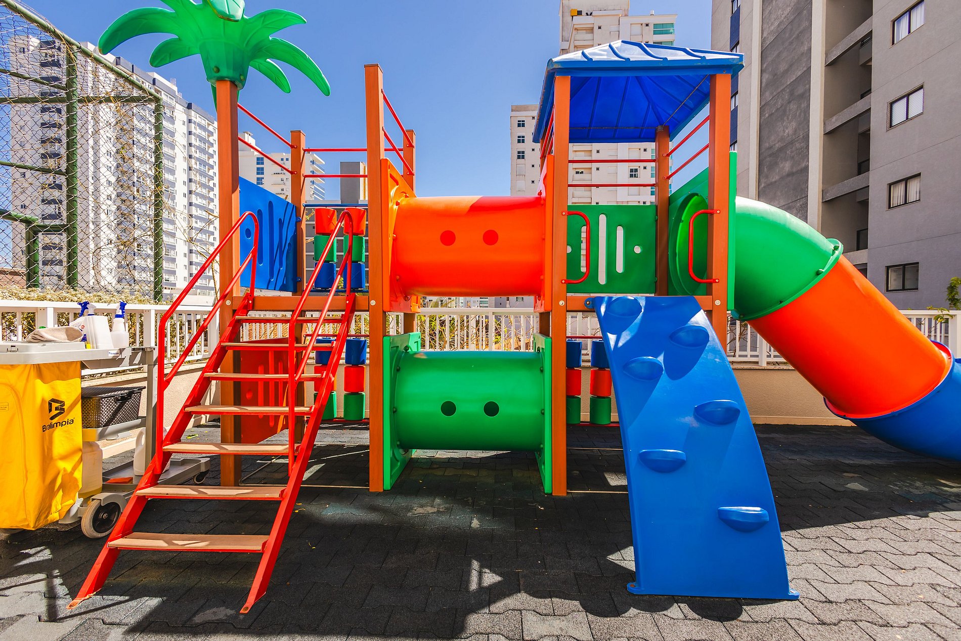O prédio também conta com home cinema/game room, brinquedoteca, playground, academia equipada, salão de jogos, quadra poliesportiva e espaços de convivência modernos e funcionais.