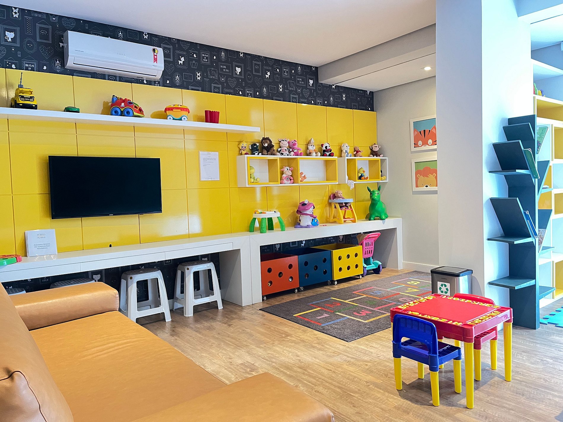 O prédio oferece uma excelente infraestrutura de lazer, com piscina, brinquedoteca e sala de jogos, além de elevador, garagem e uma vista incrível para o mar.