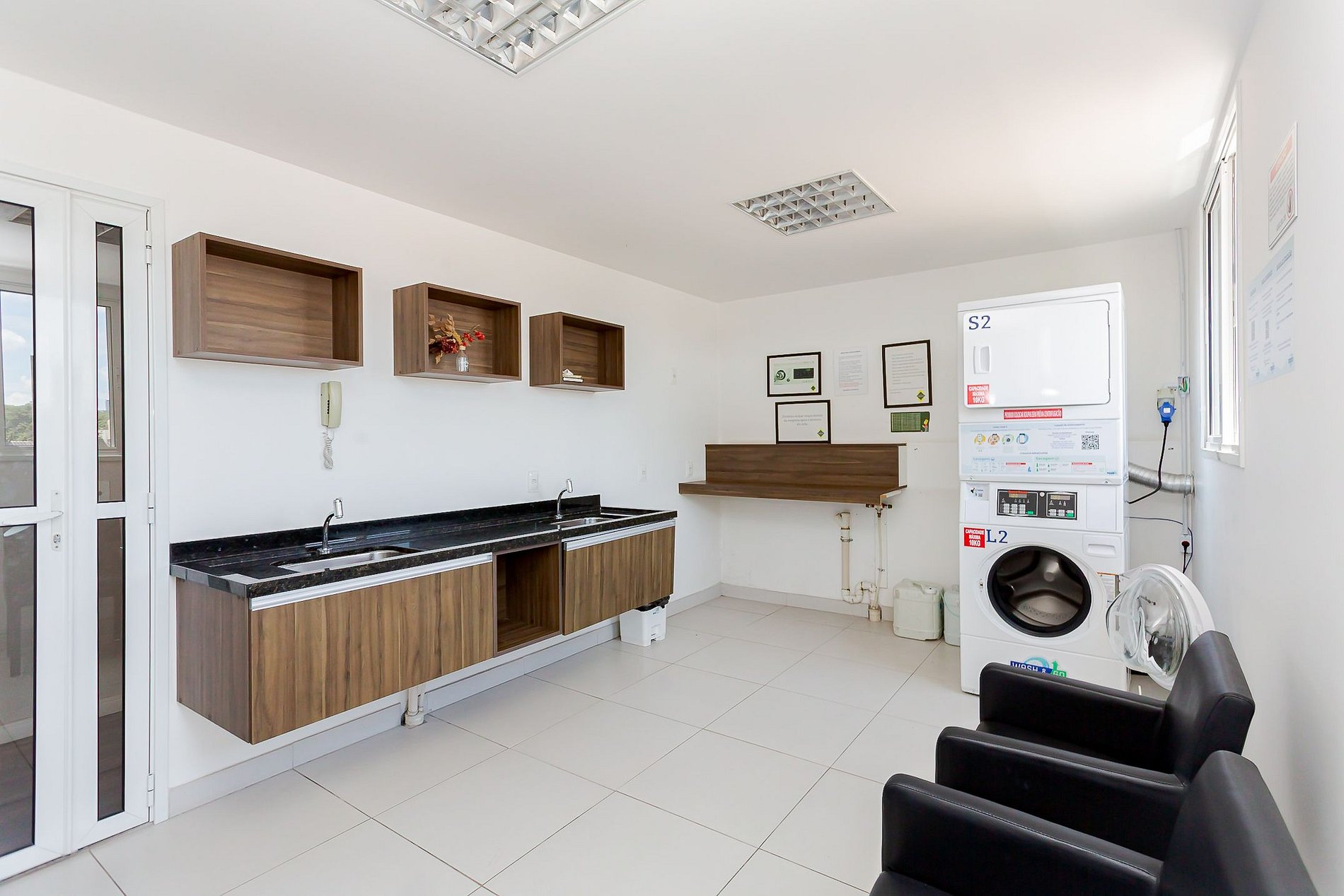 • Os andares 3 e 6 possuem lavanderias comunitárias modernas, equipadas com máquinas e secadoras automáticas, não é necessário levar sabão ou amaciante.